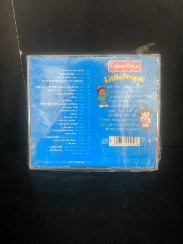 This CD titled "Little People: Songs from Around the World" features tracks produced by Dr. Linda Cameron and performed by Fisher-Price. The songs on this album are ideal for children and belong to the Children's genre. The CD was released by Fisher-Price in 2002 and is in the format of a standard audio CD. The artists on this CD have done a fantastic job in bringing together songs from different parts of the world, making it a great addition to your music collection. The record label is Fisher-Price, and the aspects of this CD include the type, release year, producer, and release title. Buy this CD and enjoy listening to songs from different countries and cultures.