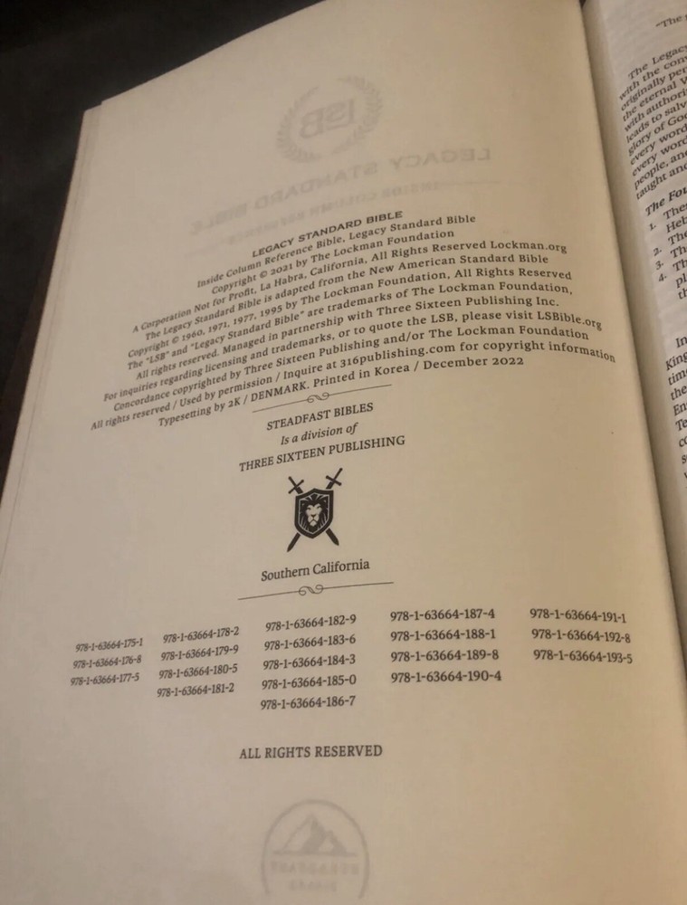 LSB Legacy Standard Inside Column Reference Bible BLACK genuine Cowhide Leather. No markings Steadfast Verse by verse...