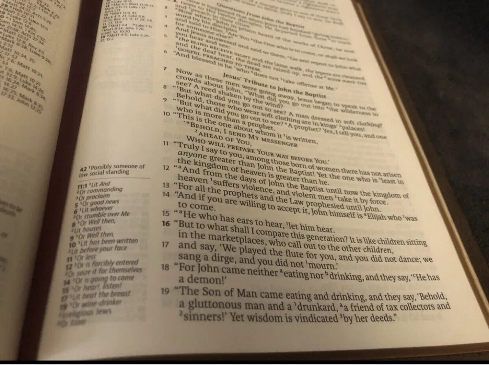 Just received this beautiful, buttery-soft leather bound Bible. Communication with Seller was great, as I had a request that the Seller fulfilled. Packaged nicely, so the Bible was not damaged. All buyers can confidently purchase with this Seller *****