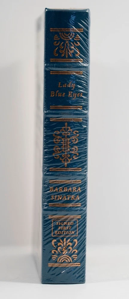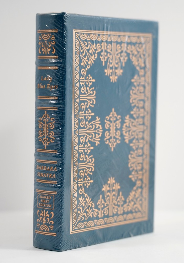 This is a leather-bound signed first edition of Lady Blue Eyes by Barbara Sinatra. Never opened! Sealed! Great condition! Book features: Easton Press Full Genuine Leather Hubbed Spine Accented With 22 kt. Real Gold Satin Ribbon Page Marker Distinctive Cover Design Gilded Page Edges to Protect Against Humidity High-Quality Acid - Free paper Smyth-Sewn Pages Silk-Moire End eaves IMPORTANT * Only ship to the lower 48 States. * Photos are of the actual item for sale. * Ask for more photos BEFORE the item before you buy. * ALL my books are carefully stored inside in a smoke free environment. * I have almost 50 books on eBay at this time, so please feel free to browse! * ALL my books are shipped in a protective manner! See my buyer's comments.