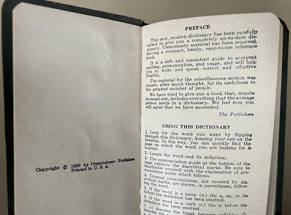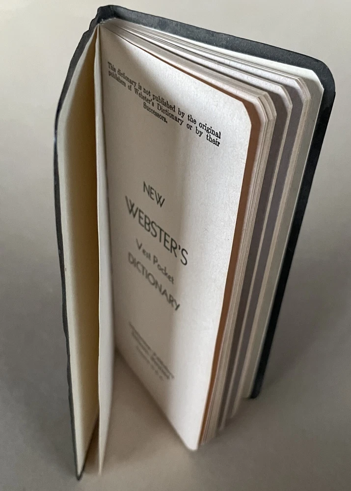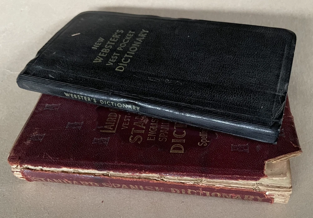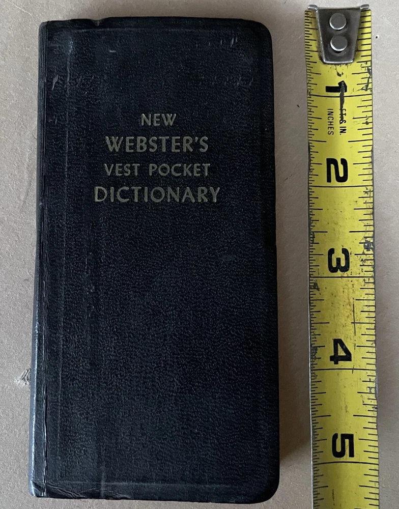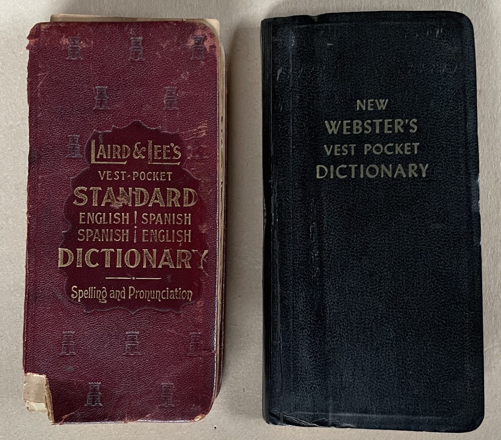 Lot of 2 Antique / Vintage VEST POCKET DICTIONARIES 1900 Laird & Lee's Standard English / Spanish Dictionary English-Spanish and Spanish-English By F. M. de Rivas , Published by Laird & Lee's in 1900 - 123 year old antique Leather binding, cover has separated as well as first title page, but all pages are there for repairing. Includes Map of the Cable Route between the US and the Far East (see photo). Other maps inside, mostly of South American countries as it is a Spanish English dictionary. Made for Vest pockets, only about 5" x 2 1/2". 374 pages 1956 New Webster's Vest Pocket Dictionary Published by Ottenheimer Publishers , Baltimore Maryland Very good condition, only yellowing of pages, some minor wear on back cover. Little bit bigger than the other, about 5 1/2" X 3" 239 pages Thank you for reviewing this listing from the FOLSOMHOUSE