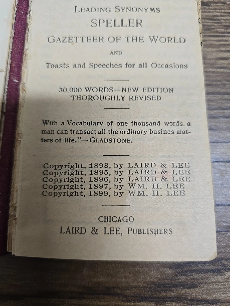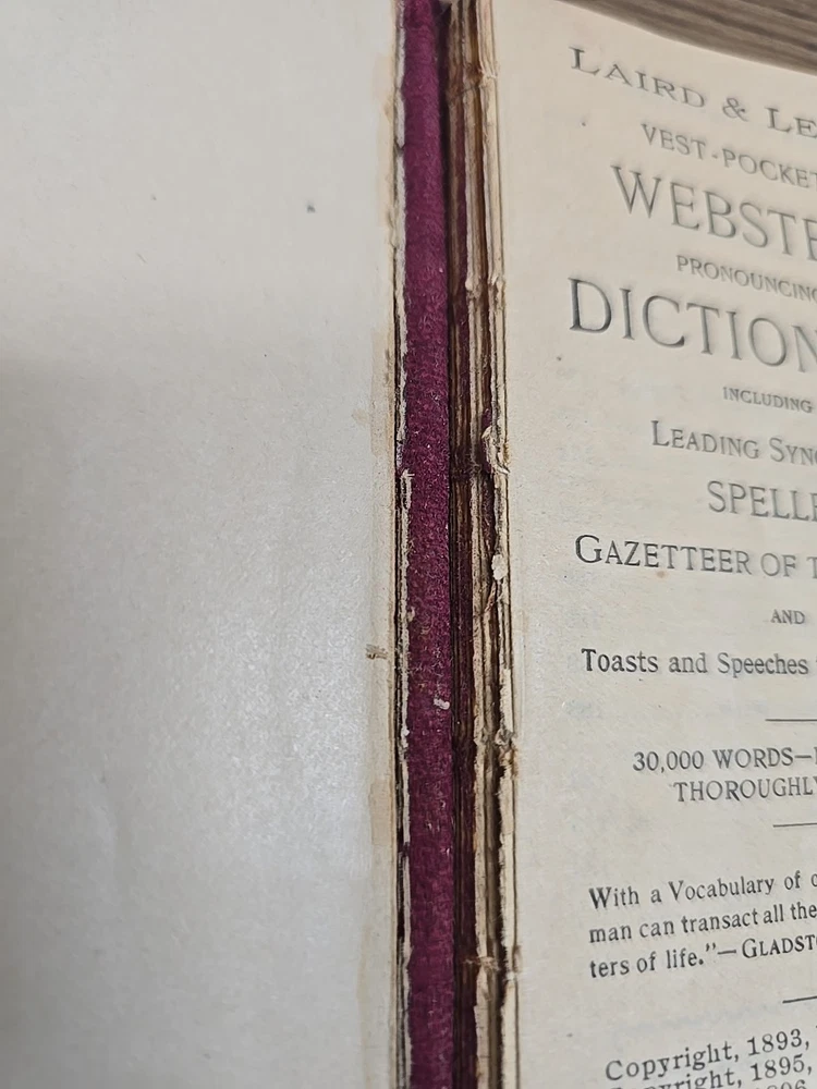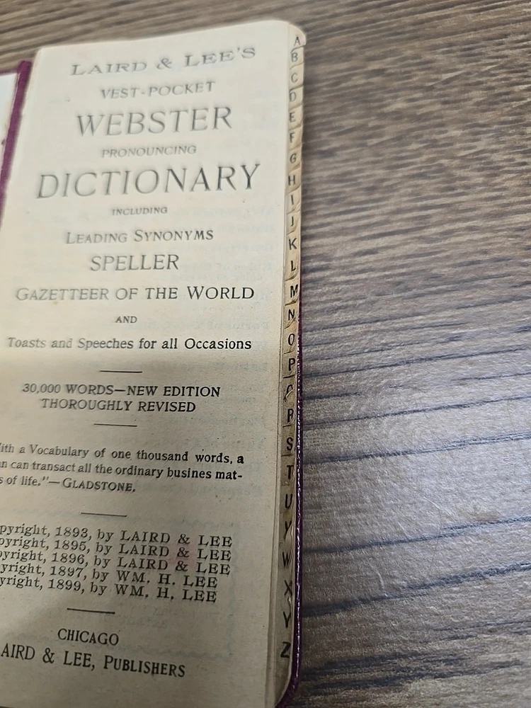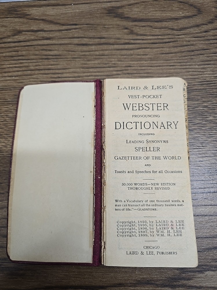 Laird & Lee's Vest Pocket Webster Pronouncing Dictionary 30,000 Words 1893 See Photos and thank you for your interest in my item!