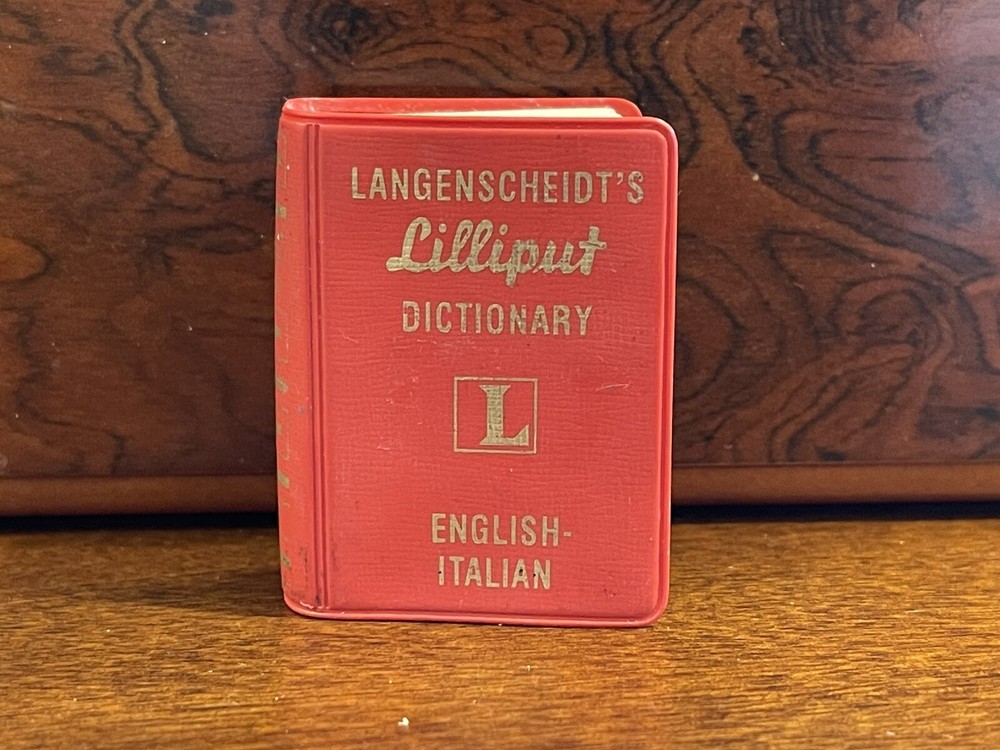 Langenscheidt's Lilliput ~ English to Italian Dictionary #215 ~ Miniature. The Langenscheidt's Lilliput English to Italian Dictionary #215 is a testament to German craftsmanship and attention to detail. The book features a durable leather cover with embossed gold lettering, exuding an air of sophistication and elegance. Open it up to reveal its well-preserved pages, each bearing meticulously printed English and Italian words, providing comprehensive language support for both beginners and advanced learners. This vintage dictionary is not only a practical tool but also a collector's item. Its age lends it a certain nostalgic charm, taking you back to the era of classic language learning resources. Whether you're a language enthusiast, a collector of vintage items, or both, this miniature dictionary will make a fantastic addition to your personal library or display. Please note that due to its vintage nature, this Langenscheidt's Lilliput English Italian Dictionary #215 may show signs of wear and age, adding to its character and authenticity. The wear does not compromise the functionality or legibility of the dictionary, ensuring you can still benefit from its valuable content.