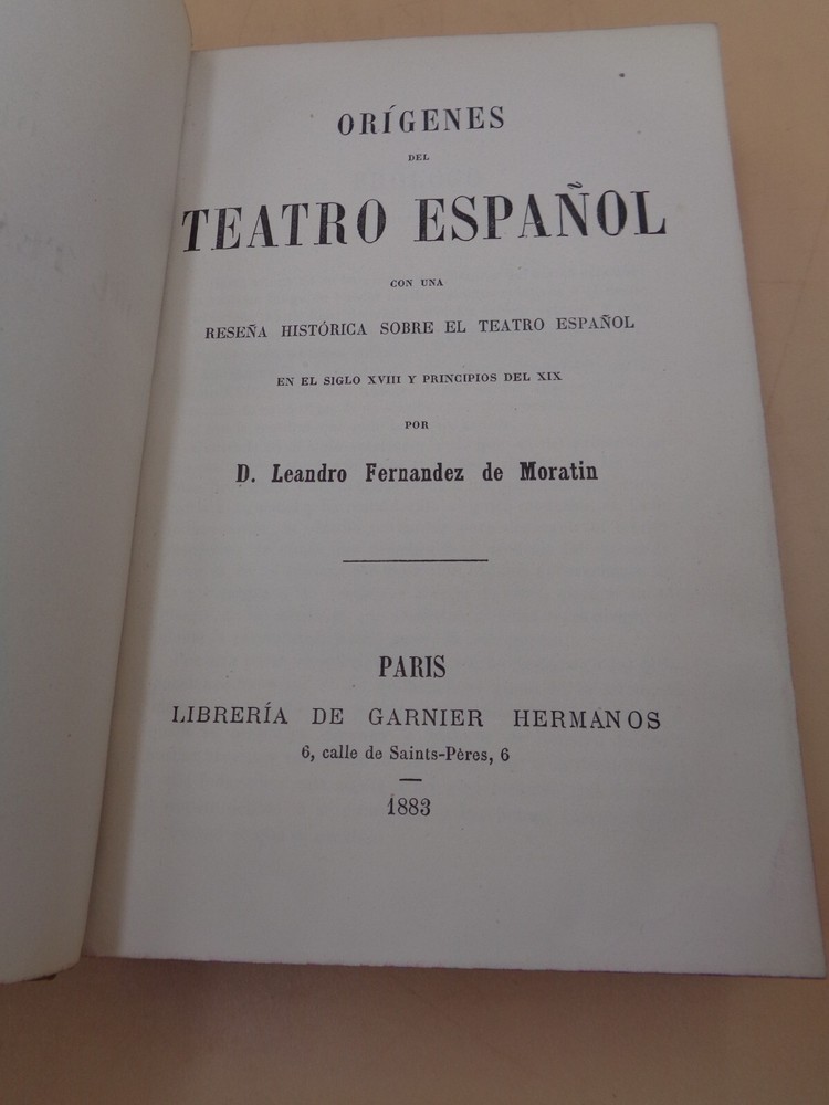 Leandro Fernandez de Moratin Origins of the Spanish theater Editions Garnier, 1883 Half sheepskin (18x12cm), 500 pages Binding a little rubbed 722 Leandro Fernandez de Moratin Origins of the Spanish theater Editions Garnier, 1883 Half sheepskin (18x12cm), 500 pages Binding a little rubbed 722