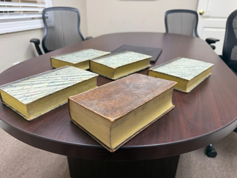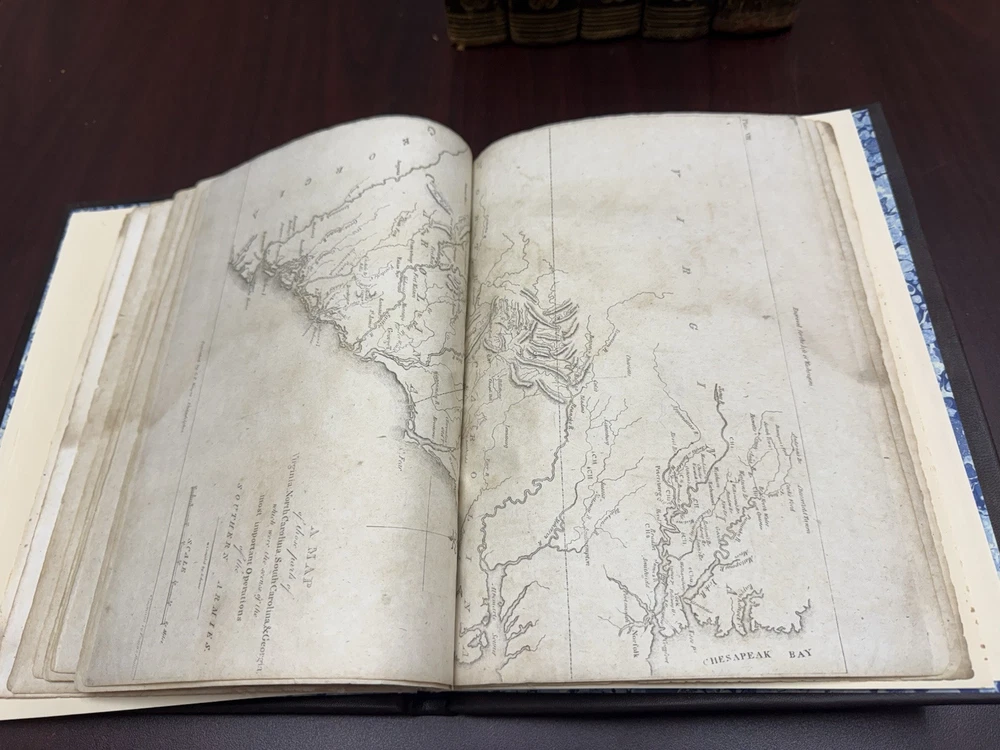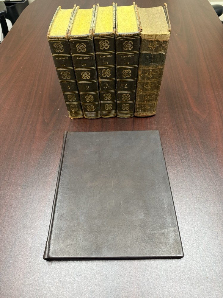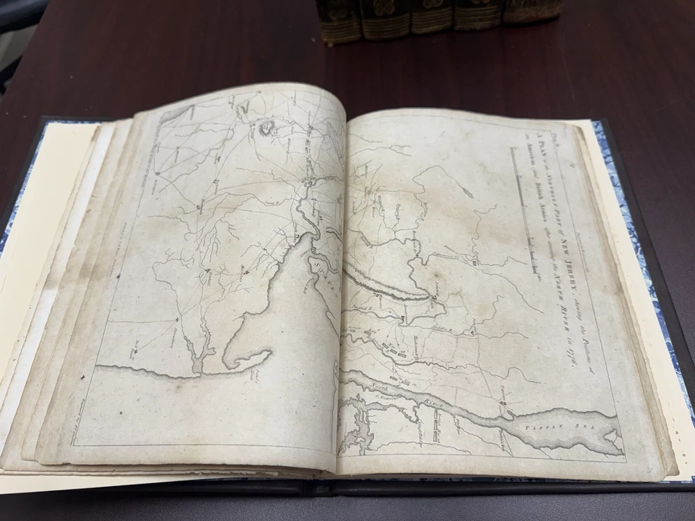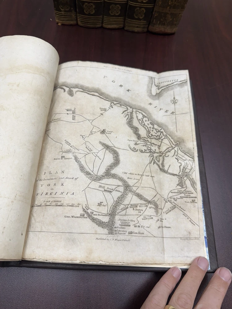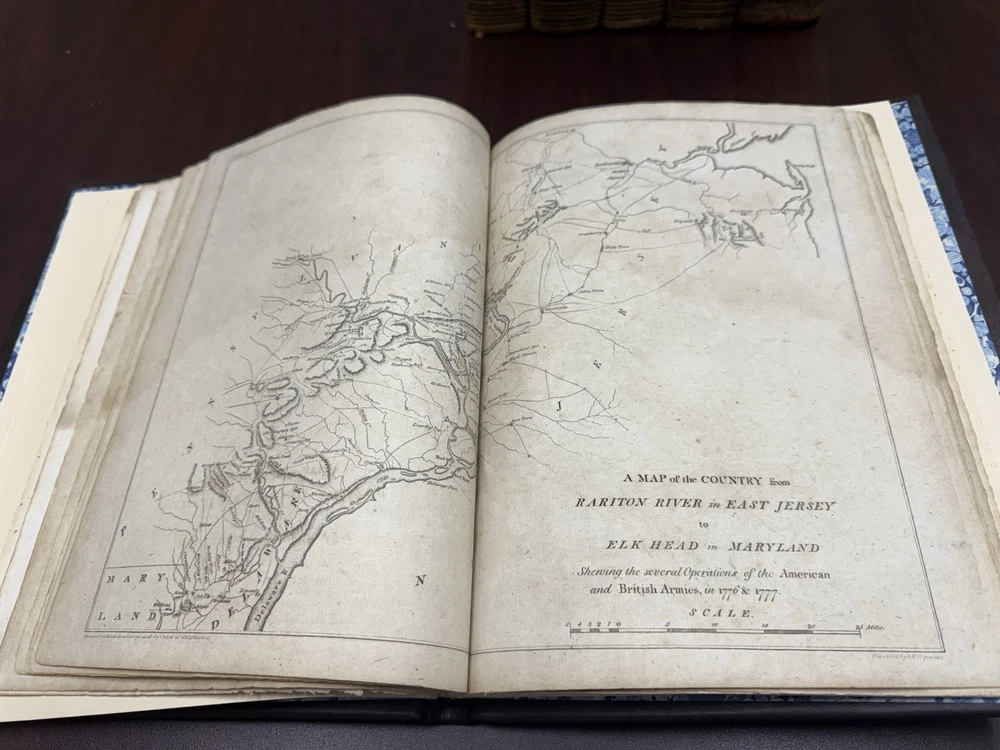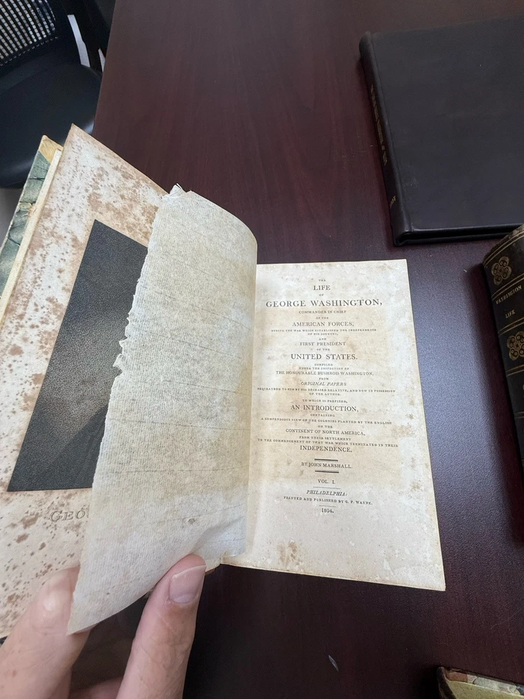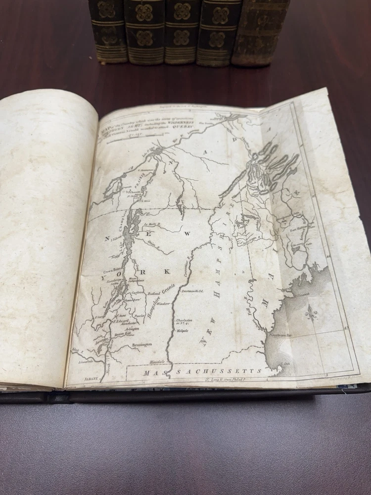 This is a rare and valuable first edition leather-bound set titled "The Life of George Washington" written by John Marshall from 1804-1807. Published in Philadelphia, Pa. by C P Wayne, this collection also includes the very rare original 1st edition atlas from 1807 with all 10 maps professionally cleaned/rebound. It is illustrated and focuses on George Washington's role in the American Revolutionary War, making it a notable piece of North American historical literature. Volume 5 is mismatched in terms of binding, as illustrated in the photos. Please feel free to ask any questions, or request additional photos, prior to purchasing.