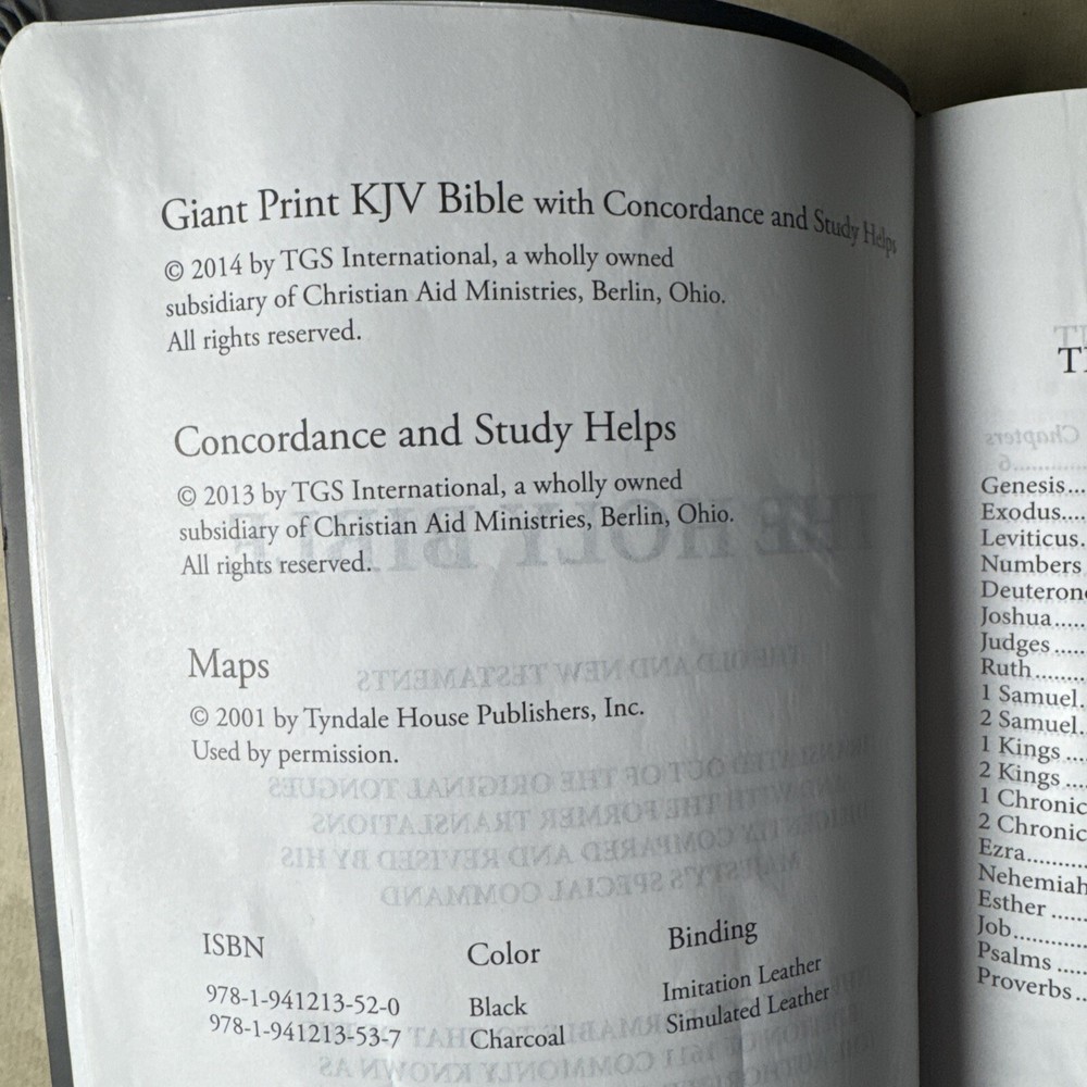 KJV Giant Print Bible TGS International Concordance Simulated Leather Charcoal