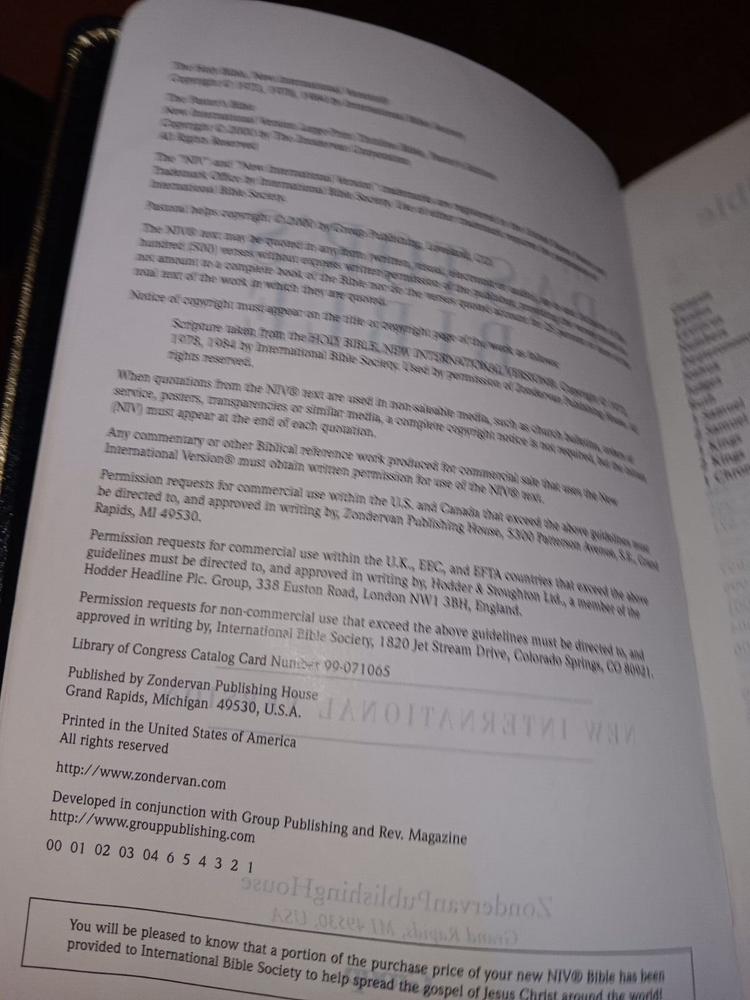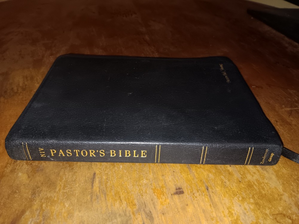 Leather Bound New International Version Pastor's Bible 2000 Zondervan Group GOOD This is a used book with general edge and shelf wear. Writing inside the front cover. No other writing noticed inside. Binding is intact, or unusual smells. Some staining to some of the pages inside. See pictures for overview of condition. We are BrightLight Books. We have sold tens of thousands of items online since 1998. Money Back Guaranteed! For Local Pickup in our Fern Park, FL store, please message us! 33-33 (3742404) 5/15/25 TR