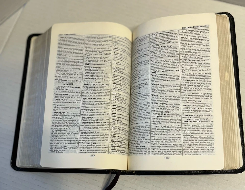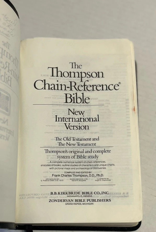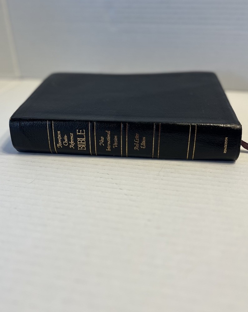 The product is a leather-bound copy of the Thompson Chain-Reference Bible in the New International Version, published in 1983 by B.B. Kirkbride Bible Co., Inc. and Zondervan Bible Publishers. The book has 1877 pages and measures 8.75 inches in length and 5.75 inches in width. Written in English and compiled by Frank Charles Thompson. In nice condition with light wear to a few corners. Light writing on a few pages. Highlighting on 1 page. See photos. FROM A SMOKE FREE HOME… Check out my other items! I have good and different items. I usually have a good number of nice Bibles. Remember to save me as a seller and check back often. Thanks for looking! Please read carefully: If you have any questions about the item or shipping costs please ask before you have purchased the item. All items I sell on eBay here are used items unless otherwise noted. I do my best to describe everything and take as many pictures as possible. However, it is used merchandise and is sold as is, no refunds. I would appreciate payment to be made within 3 days from purchase. Items will be shipped the same day or the next day that payment is received, as long as it is a business day. I use the service that is the most economical. If you prefer another service please let me know before you pay. Thanks in advance for your time and consideration of my items for sale.