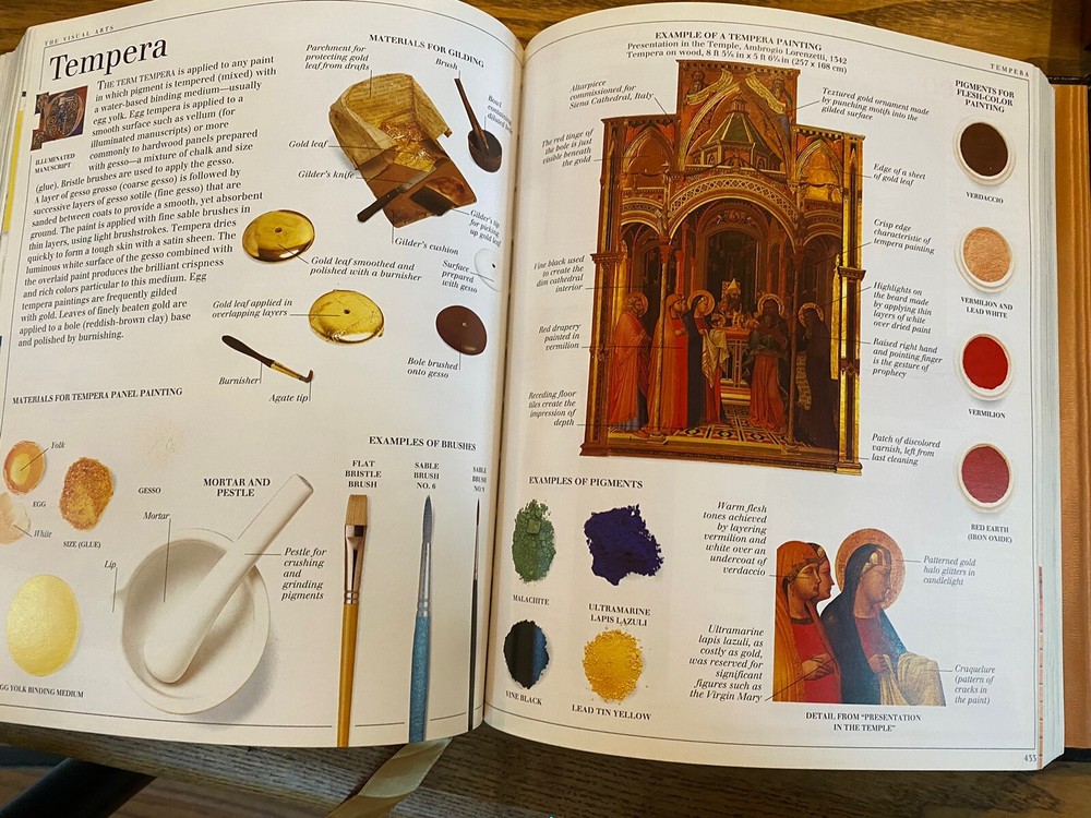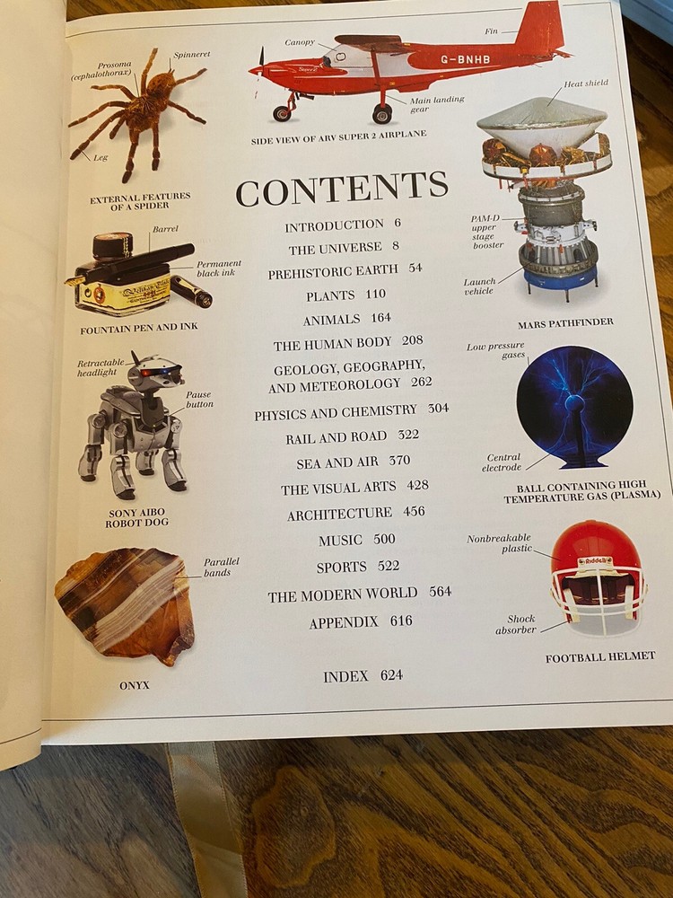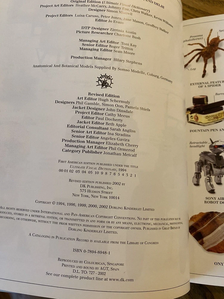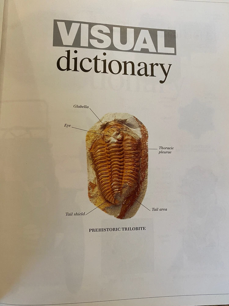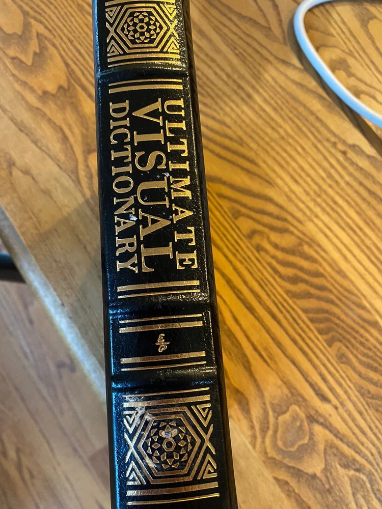 Leather bound book,visual dictionary Published by DK 7 3/4 x 9 1/2 Inside is perfect except for writing on inside page, on pictures Back cover has some wear marks This is a great gift!!