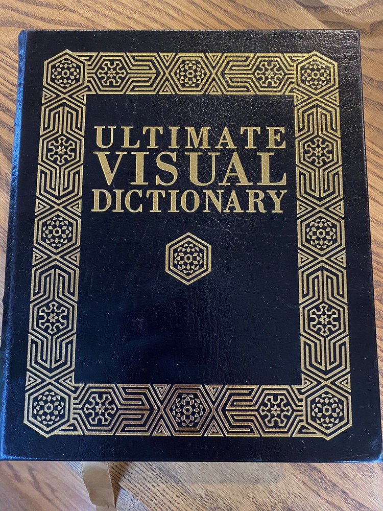 Leather bound book,visual dictionary Published by DK 7 3/4 x 9 1/2 Inside is perfect except for writing on inside page, on pictures Back cover has some wear marks This is a great gift!!...