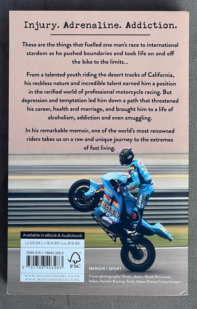 Explore the high-octane world of MotoGP racing with "Hopper" by John Hopkins and Mark Strand. This gripping nonfiction narrative offers readers an insider's look into the exhilarating realm of professional motorcycle racing. Written in English and presented in a convenient paperback format, it's a must-have for fans of the sport and those inspired by the skill and speed of MotoGP's top riders.In addition to the rich content, the book also serves as a tribute to the iconic Suzuki brand, making it a collectible for enthusiasts of motorcycle history and culture. Whether you're a dedicated follower of John Hopkins' career or a MotoGP aficionado, this leather-bound edition is an excellent addition to any library. This book is from my personal collection and is a great read and view into both the life / times of Hopper and MotoGP.