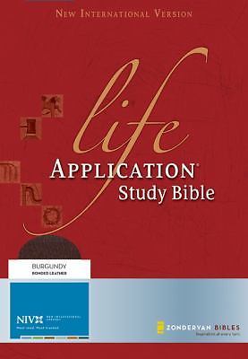 Zondervan TYNDALE NIV Life Application Study Bible red Bonded Leather 2005 NEAR MINT HAS FAUX LEATHER CASE WITH BUILT IN RIBBON BOOK MARKERS A KEYCHAIN AND WALLET AND INTERACTIVE REFERENCE DVD BIBLE IS VIRTUALLY MINT NEW CONDITION BUT DOES HAVE A WHITE STICKER OVER OLD NAME ON PRESENTATION PAGE and blank page opposite. INTERIOR IS ABSOLUTELY SPOTLESS CLEAN . RED LETTER EDITION, CONCORDANCE, AND COLOR MAPS. BONDED LEATHER IS NEAR MINT CONDITION . SEE ALL PICTURES.