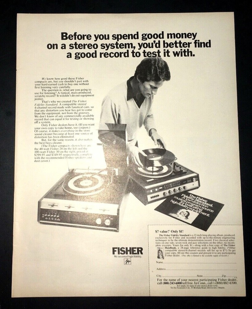 Life Magazine 1972 Ad Product: FISHER Stereo System "We invented high fidelity " Good condition, Very minimal wear Approximate Size: 1 sheets - total size approximately 10.5 x 13.5 inches All ads and covers are always originals. Shipping Each sheet (or sheets) are carefully placed in between sturdy poster board and mailed in sturdy large envelope. Package will clearly be marked "DO NOT BEND" PAYMENT: We accept online payment via PayPal. This can be made with your checking account or a credit card. Simply complete eBay Checkout after completion of a purchase(s) and/or receipt of invoice. SHIPPING/ORDER STATUS: Shipping charges are $4.00 via USPS shipping but may take a week or two to arrive. If you need your shipment quickly, please request an invoice with Priority or Express shipping which will be an extra charge. We go to the Post Office often so if your item is paid for it will go out in the next shipment. COMMUNICATION: I will always send an email to let you know that we have received your payment and that your package has shipped. Many email programs have spam filters that may prevent my emails from reaching you. Please check your spam/junk folder if you have not received an email from me. You are free to email me anytime you have a question about shipping or the status of your package. AD CONDITION/DESCRIPTION: I try to provide a thorough description for each listing. If you have questions about a listing, feel free to email me and I will provide you with any additional information that you may need. All auctions include a photo of the actual Ads you will receive. No stock photos are ever used.