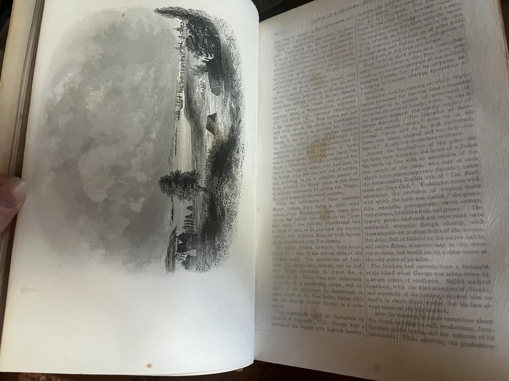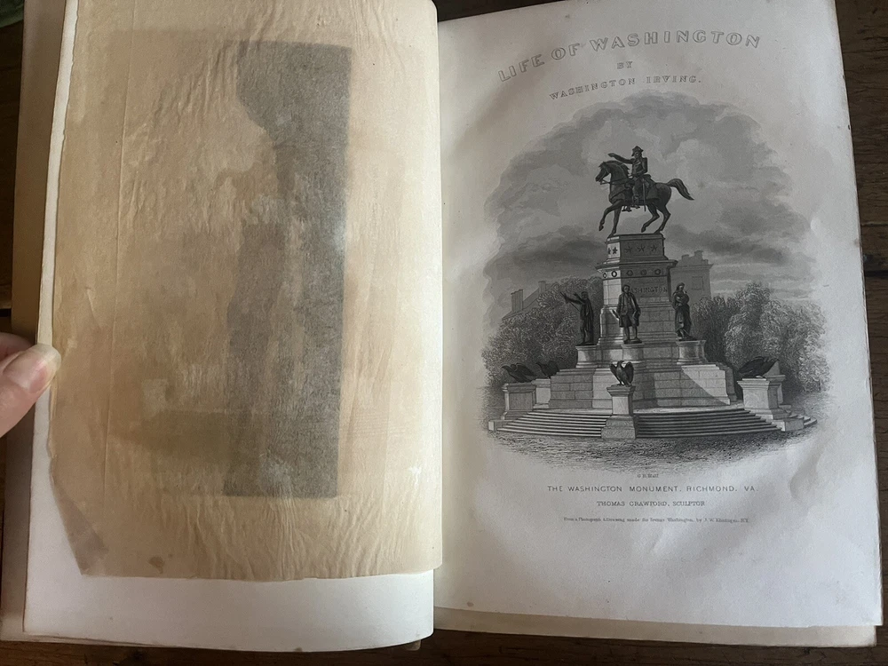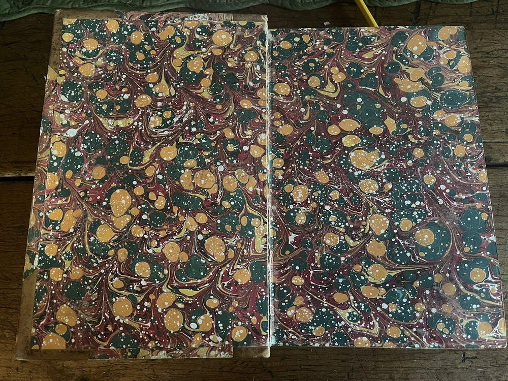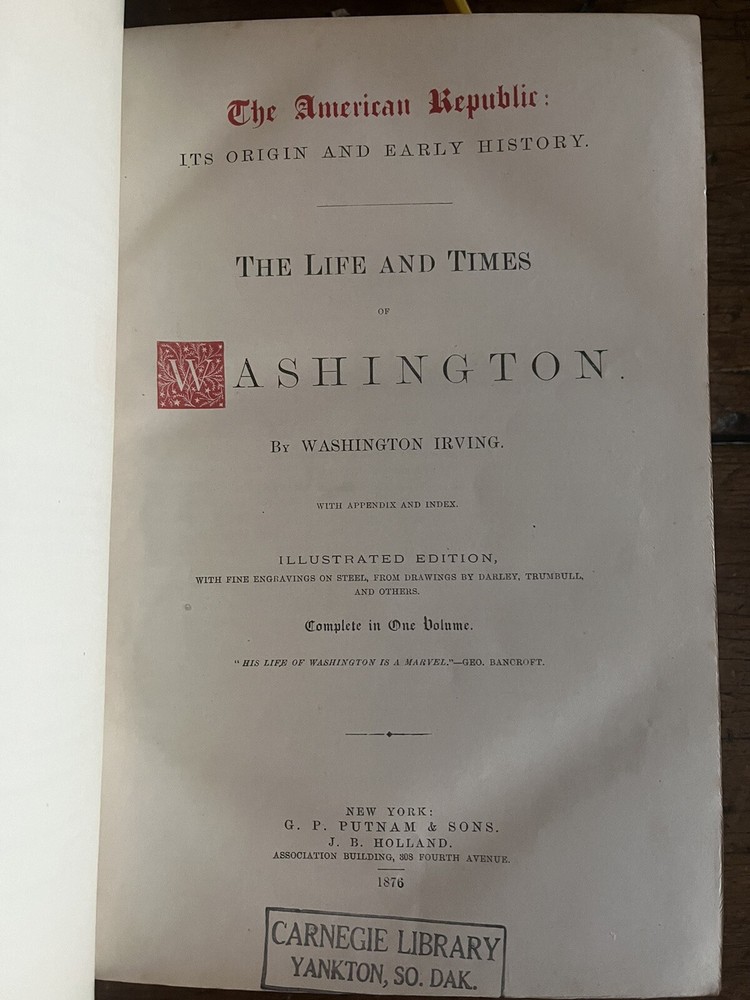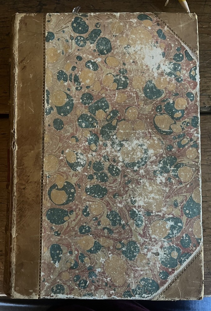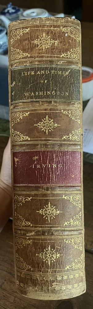Single-volume edition of this work by Washington Irving. Bound in one-quarter polished calf with marbled boards, edges, and endpapers. Colored leather spine labels with gilt lettering. All plates appear intact. Defects-wise, there is moderate rubbing and moderate wear to edges. Unobtrusive 19th-century library markings of the Carnegie Library of Yankton, SD, confined to a few ink stamps throughout. Someone has pressed flowers and a newspaper clipping between two pages. Else clean and tight—a handsome copy.