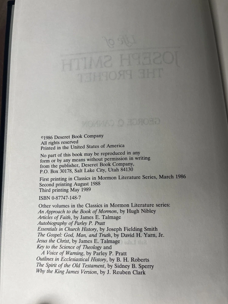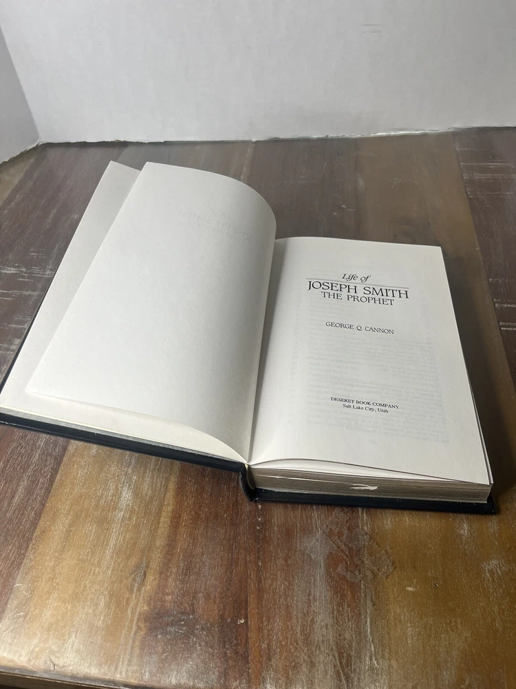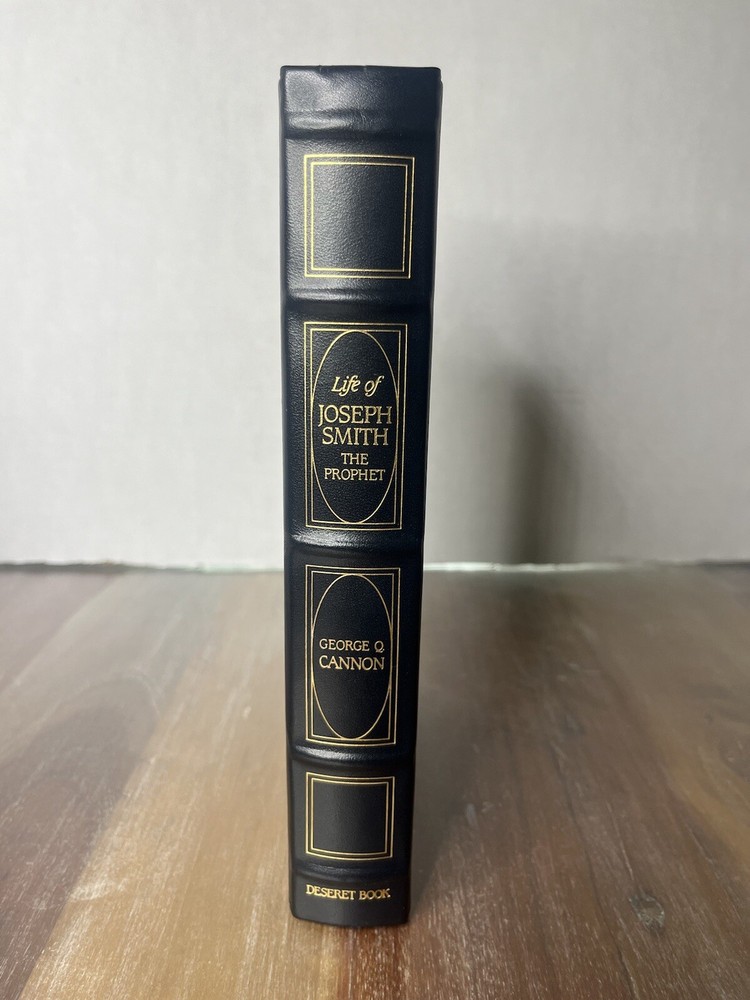 The product is a leather-bound hardcover book titled "Life of Joseph Smith The Prophet" by George Q. Cannon. It was published by Deseret Book Company in Salt Lake City, Utah in 1989. The book is an autobiography about Joseph Smith, the founder of Mormonism, and falls under the subject of religion and spirituality. The language of the book is English and it was printed in the United States.