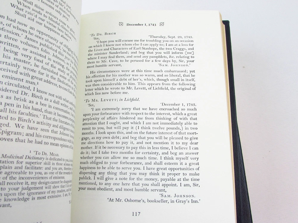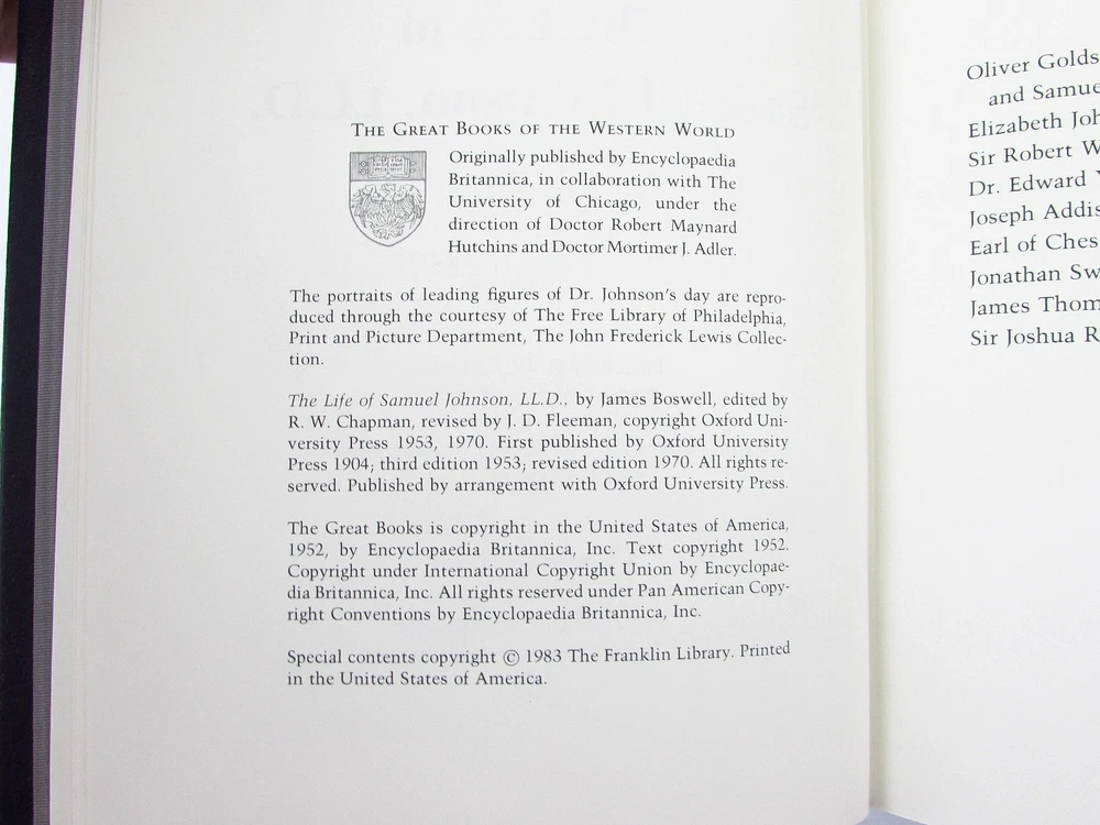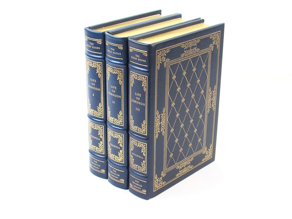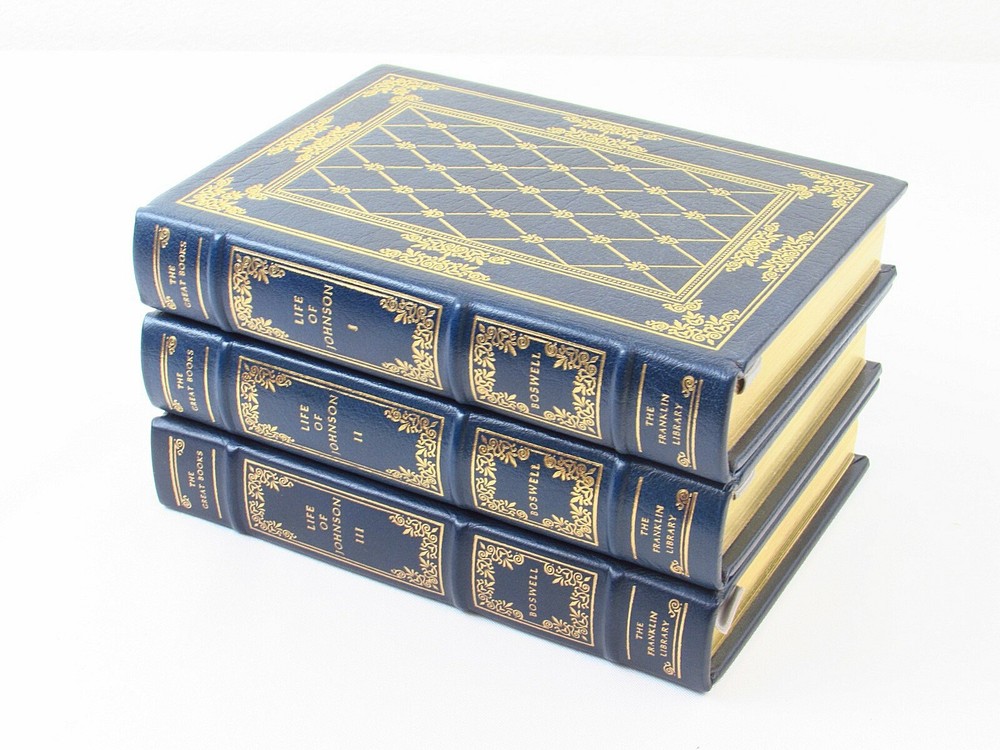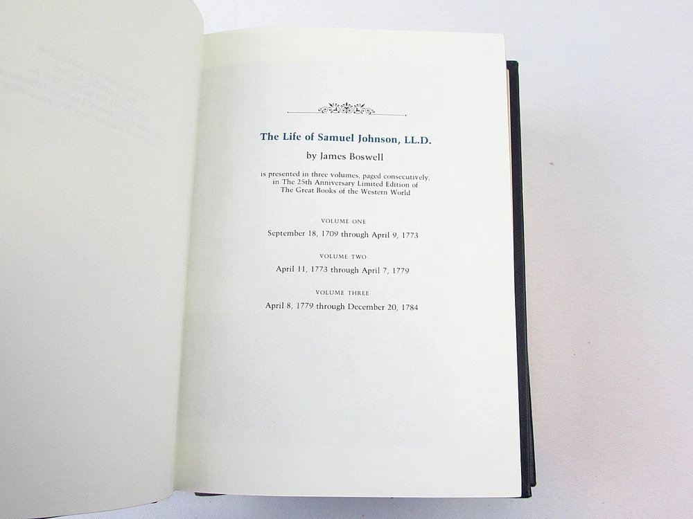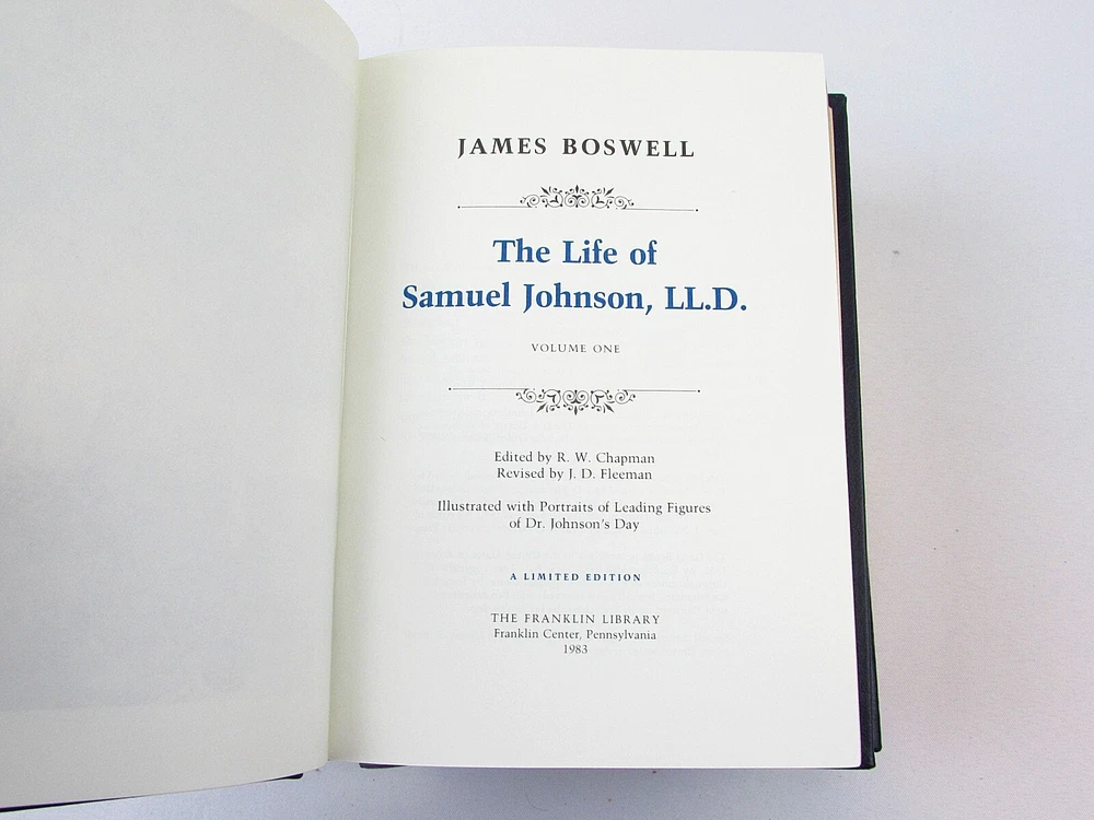 ______________________________________________________________________________________________ The Life of Samuel Johnson by James Boswell (3-Volume Set) - Published by the Franklin Library - Copyright 1983 - Hardcovers (genuine leather over boards) - Gilt lettering and decoration - Gilt edges - Marker ribbon These volumes are part of the Franklin Library 25th Anniversary Limited Edition of "The Great Books of the Western World." *Very* faint tobacco smoke odor from former owner, fairly negligible in my opinion, but I still like to make note for those who might be sensitive. Otherwise clean/unmarked and in excellent, virtually as-new condition. See photos FREE Standard Shipping via USPS Media Mail Expedited and International shipping available Please let me know if you have any questions and I'll be glad to help