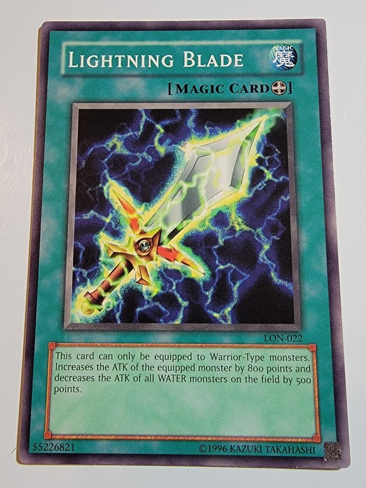 Lightning Blade - LON-022 Common Unlimited Yugioh Common Unlimited Yugioh. Overall NM-M condition. (Please reference pictures for c osmetic condition). Take advantage of our multi item discount!!! When you buy 2 items you will have the opportunity to select a 3rd item of equal our lesser value for free from our whole inventory. (Must use Ebay's shopping cart feature in order to take advantage of this discount). If you have any inquiries please feel free to message us and we will respond as soon possible, usually within 24 hours. SHIPPING We almost always use USPS as our primary SHIPPING service. We ship within 24 hours of receipt of payment and will always provide tracking, unless otherwise stated in the listing. (We reserve the right to use a different carrier or service). FEEDBACK Your FEEDBACK is important to us as a growing small business. If for any reason you are unhappy with your transaction, please message us and we will do everything in our power to make it right. Returns Returns are accepted within 30 days of confirmation of delivery. If there is anything you are unhappy about with your purchase please message us and we will respond within 24 hours to your concerns. Thank you for supporting our small business. We appreciate your valued business with us and look forward to serving you in the future. Dan & Tonya Dio's Eclectic Treasures