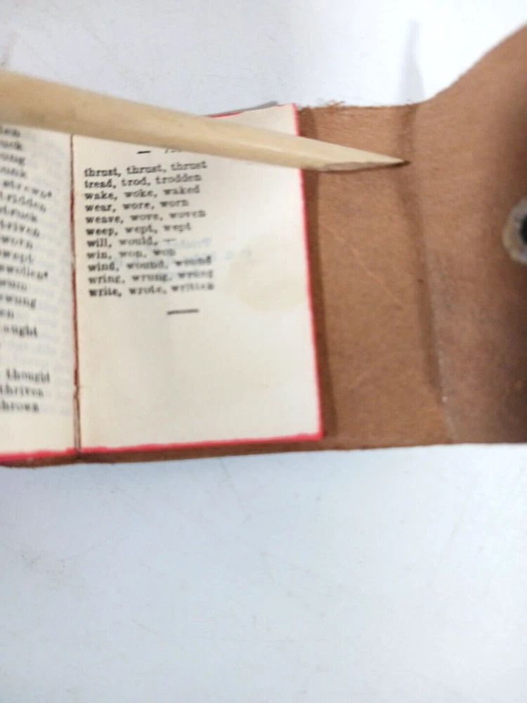Lilliput The Little Webster Miniature Dictionary. Lake George NY Souvenir. Light cover wear. Water stain on one page, see pic. 2" x 1.5" x 1"