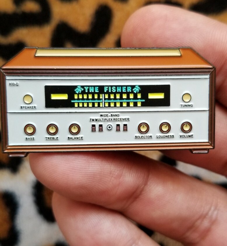 2"inch enamel pin modeled after the Fisher 800C Tube Stereo Receiver. 1-day handling time shipped USPS First Class. Limited Stock "---BUY ANY 3 PINS & GET 1 FREE OF YOUR CHOICE---" "or Glow in the Dar...