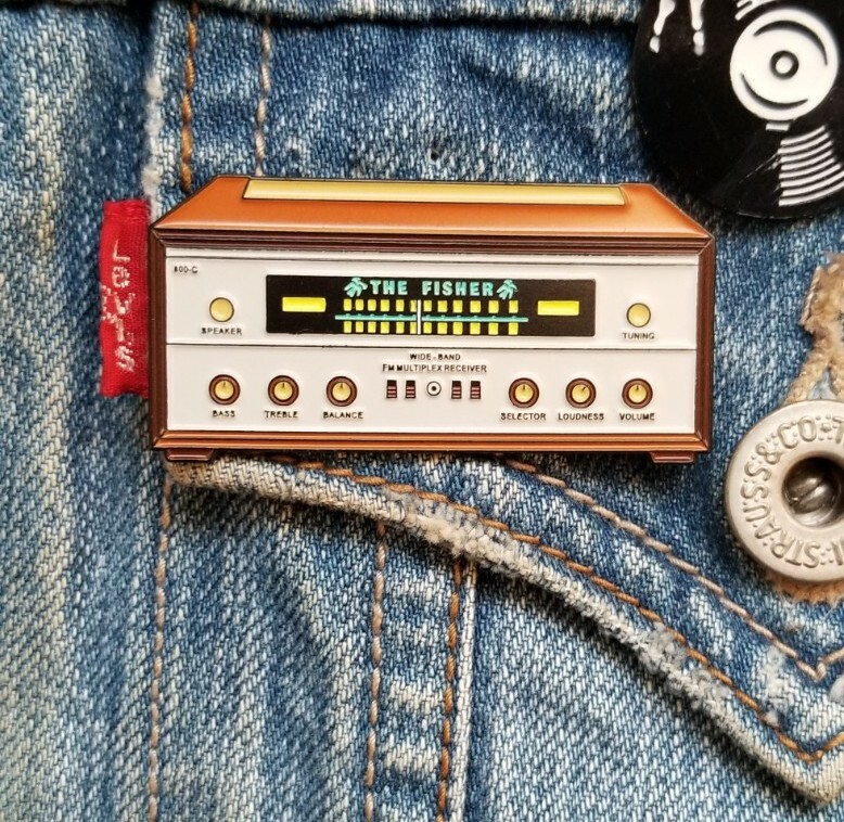 2"inch enamel pin modeled after the Fisher 800C Tube Stereo Receiver. 1-day handling time shipped USPS First Class. Limited Stock "---BUY ANY 3 PINS & GET 1 FREE OF YOUR CHOICE---" "or Glow in the Dark McIntosh Pin"
