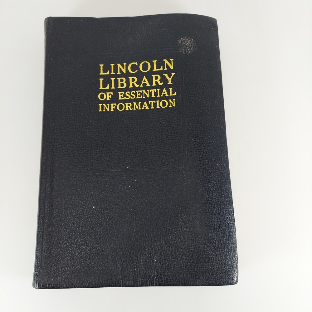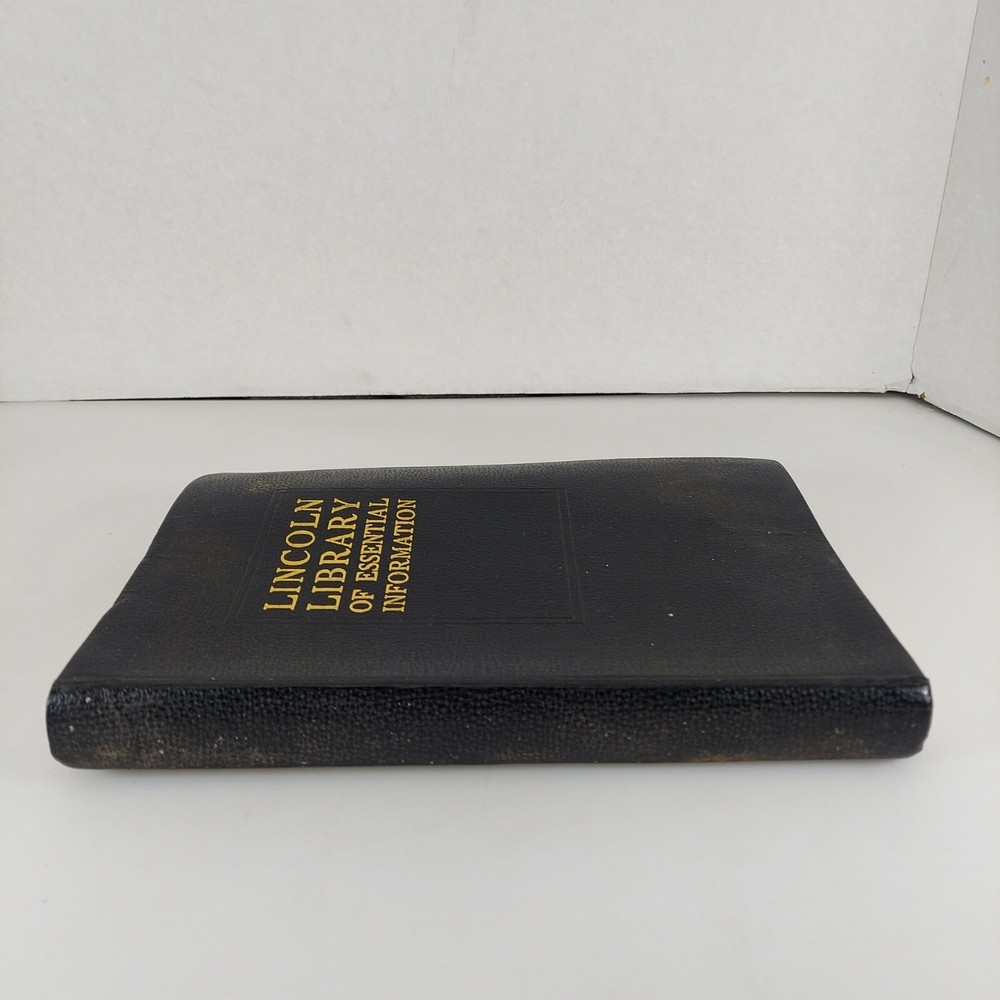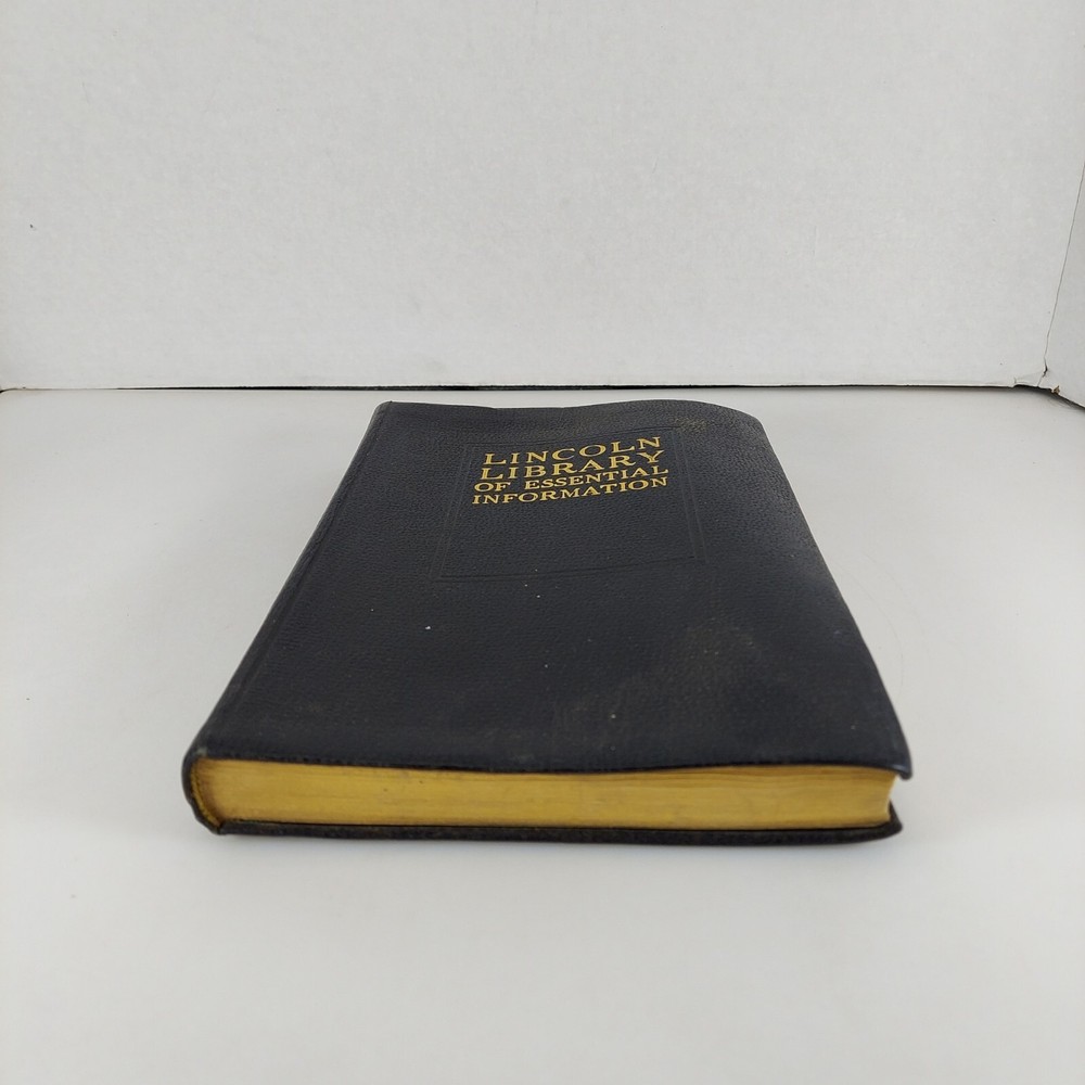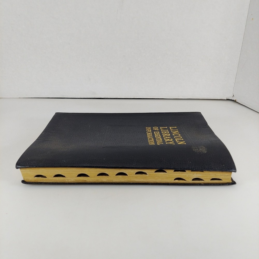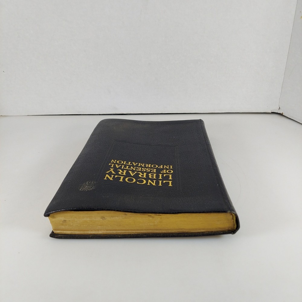 Lincoln Library of Essential Information Leather Tabbed Illustrated 1949. Condition is Acceptable with cover wear and staining, light tanning and evidence of moisture exposure on pages as shown. A still very usable copy. Shipped with USPS Media Mail