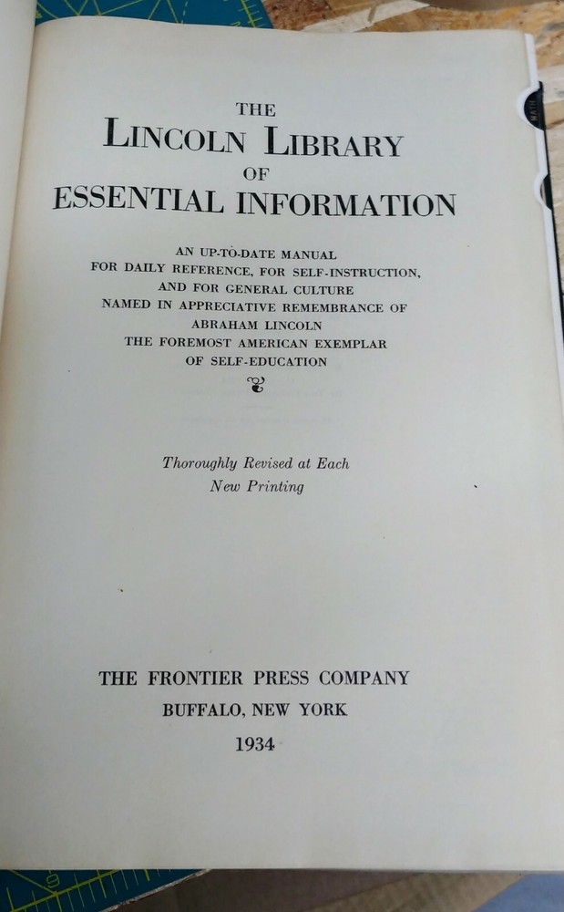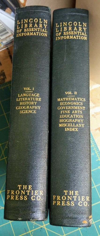 Lincoln Library of Essential information Volume 1 &2 1934 Frontier Press. Both volumes in very nice condition. Ships Media Mail