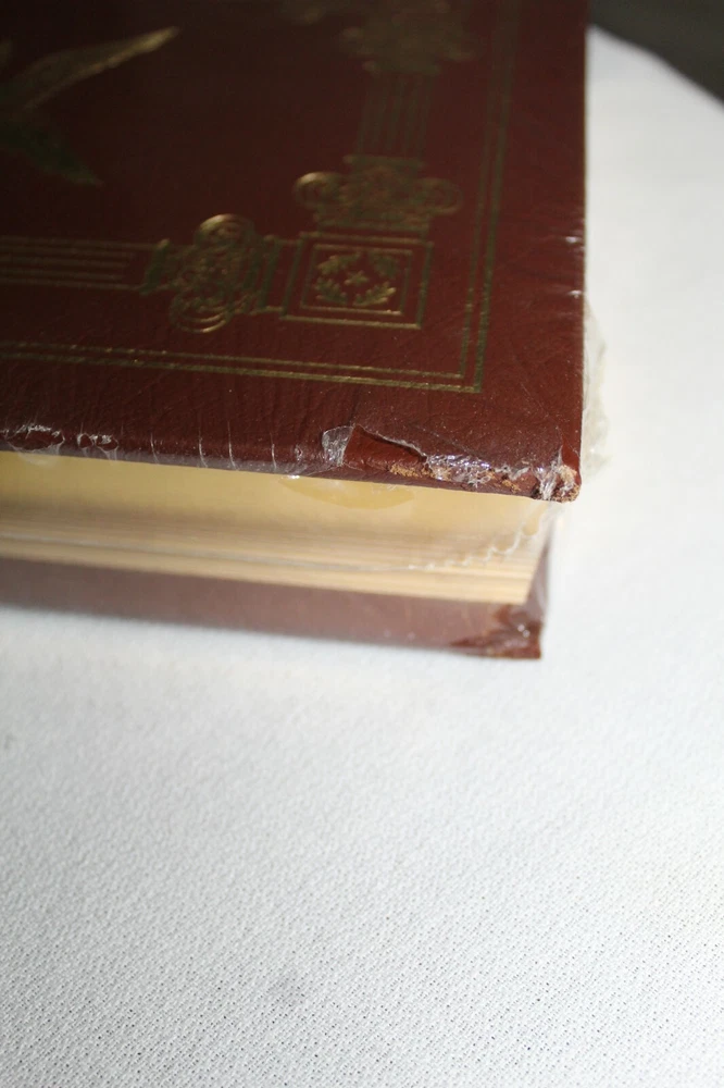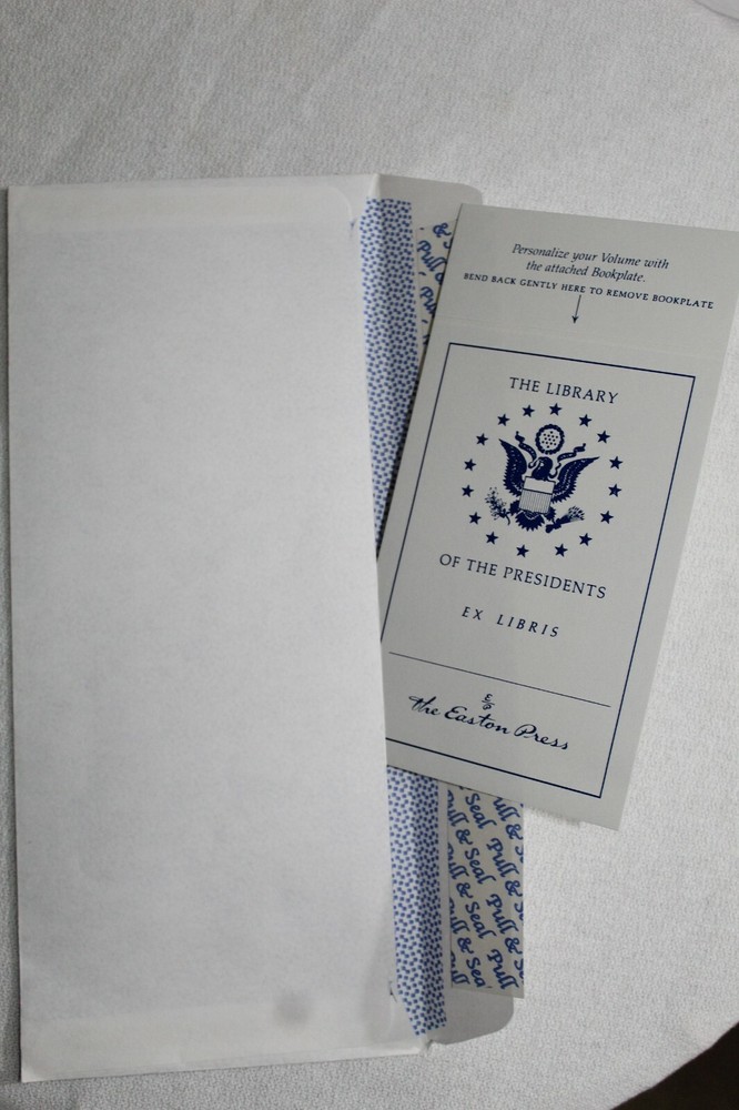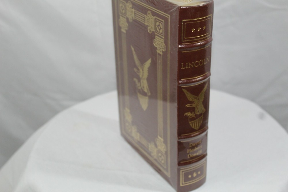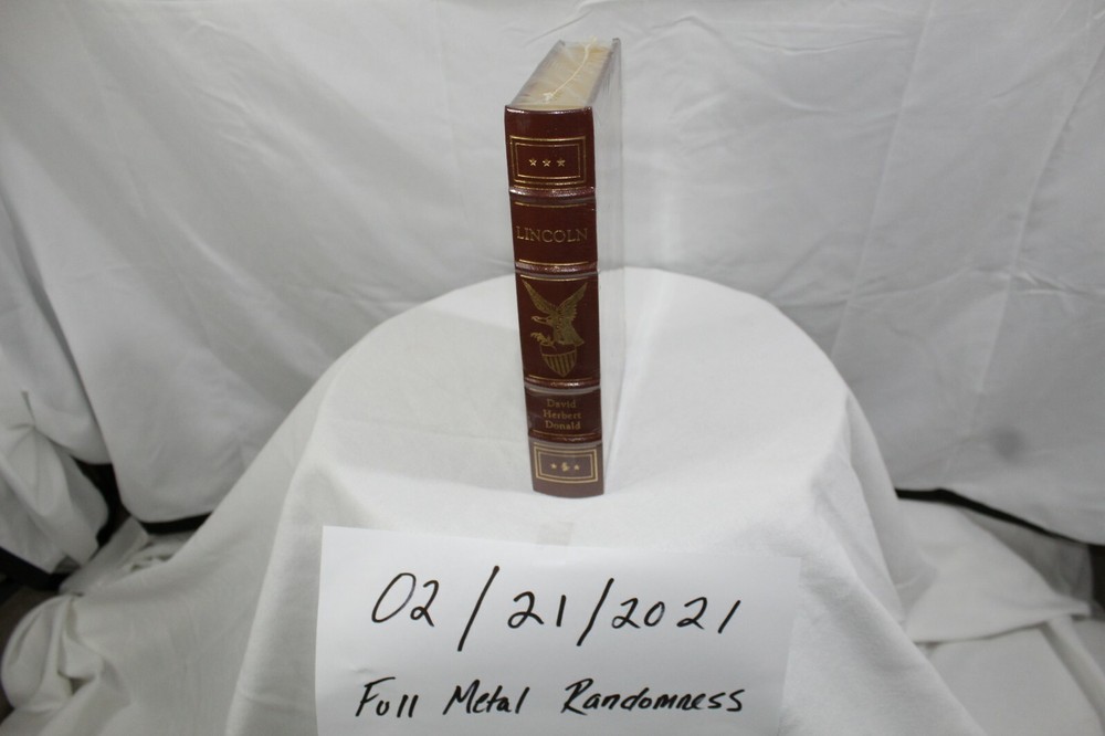 Up for sale is a still-in-the-wrapping hardback copy of LINCOLN, by David Herbert Donald and published by the Easton Press. As is standard for these, the outer trim of the pages are coated in 24k gold, with the binding and exterior being of some the highest quality you can find. This particular book unfortunately was scuffed up a bit in my last move I suppose; the plastic has worn through in a couple of places, and in those places the cover has received some scuff damage. Nothing too terrible and the photos actually (IMHO) make it look a tad worse than it is. I totaled the aggregate LENGTH of the mild scuffs since they are in two places, and it's just over an inch in total. All Easton Press books come with a custom bookmark, and this one in particular has a custom "Library of Presidents" bookmark - this comes in it's own envelope. All books will be shipped with CARE, within 48 hours of payment received. If you have any questions or would like a couple of better quality photos since the ones I have are subpar, feel free to reach out and ask!