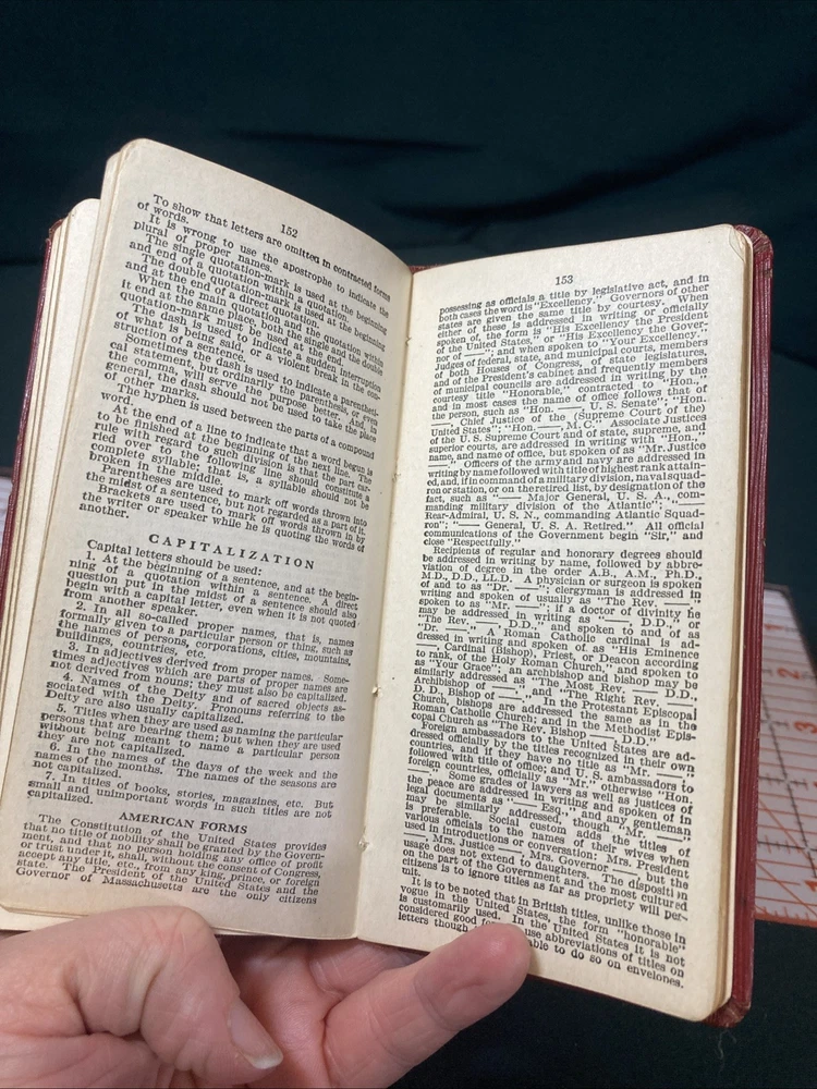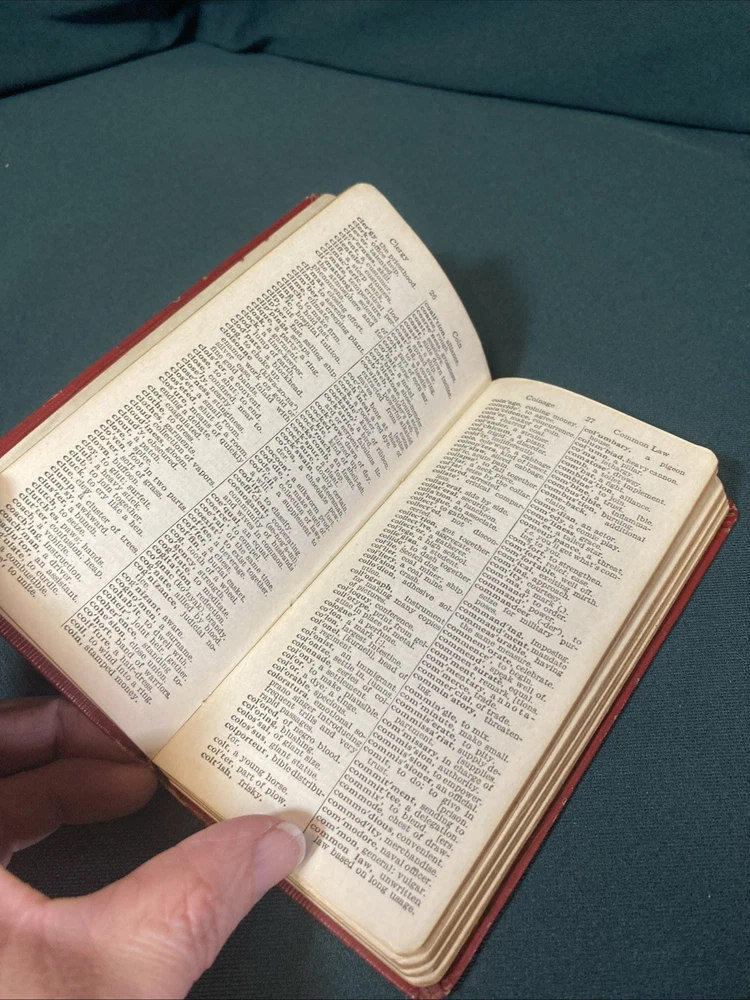 This vintage 1931 pocket dictionary is a charming treasure! Packed with fascinating extras like grammar rules, state name meanings, and even the language of flowers, it's a delightful peek into the past. The binding is solid, pages are intact with clear text, and though the cover shows some age, it adds to its character. A wonderful find for collectors or anyone who loves old books!