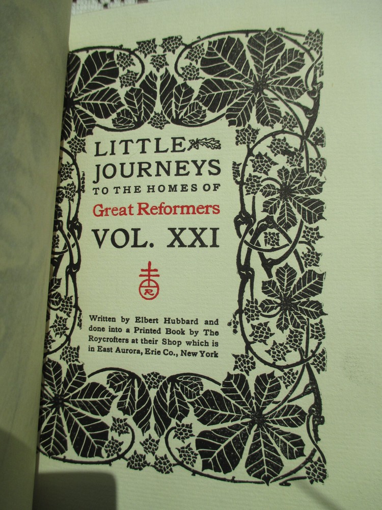 I am selling Little Journeys to the Homes of Great Reformers written by Elbert Hubbard and published by the Roycrofters. It is volume XXI of the series and has a copyright of 1907. It has 169 pages which have a deckle edge. Please check the description and photographs. Please contact me through eBay prior to bidding if you have questions or need more photographs. Feel free to bid if that option is available. Please be aware of the return policy. Import fees, customs fees, etc. are the responsibility of the buyer. Thank you for looking!!