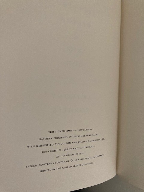 Limited Edition, privately printed by The Franklin Library and personally signed by the author exclusively for members of The Signed First Edition Society. Includes a brief essay specially written for this edition. Sealed in publisher shrinkwrap. Like New, pages tight, unread. First Edition, issued on high-quality, acid-free paper. Smyth-sewn, bound in full genuine top-grain leather binding. Gilt edges on all three sides. Pages sewn into binding. Decorative end papers and hand-signed by the author. Raised spine bands that provide a distinctive antique look. Attached silk page marker. No jacket as issued. Book weighs 2 lbs, 6 oz. Wrapped in bubble wrap, shipping in a sturdy box not a bag next business day.