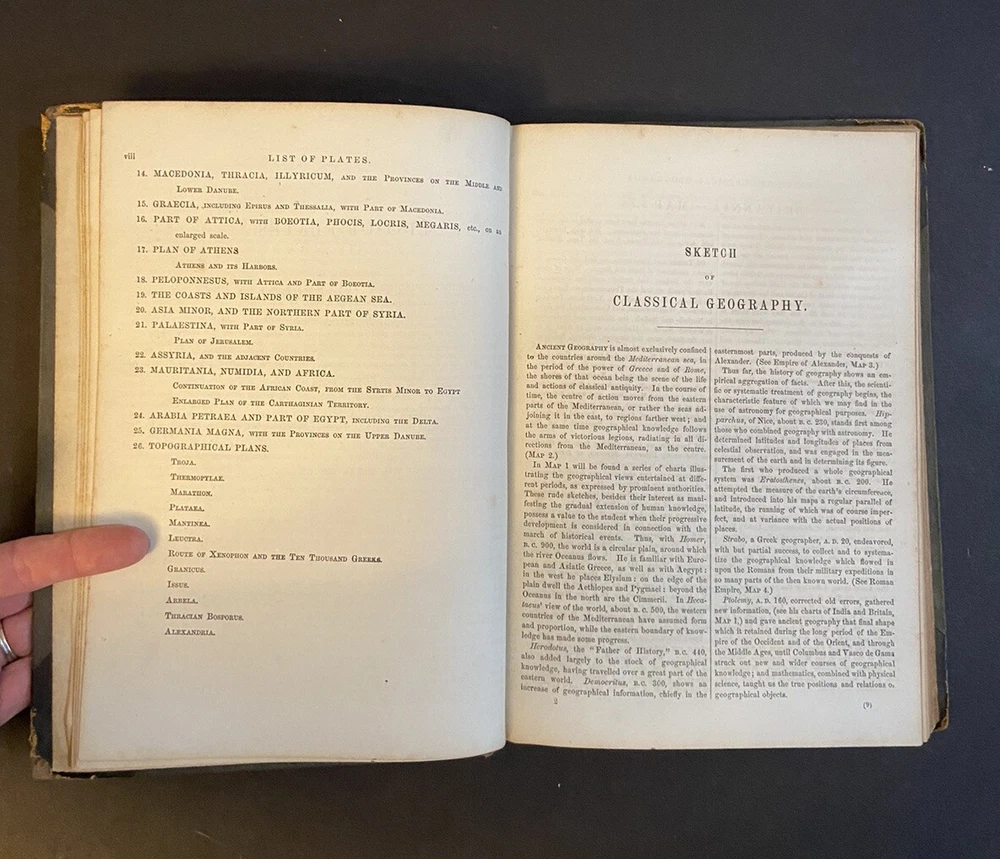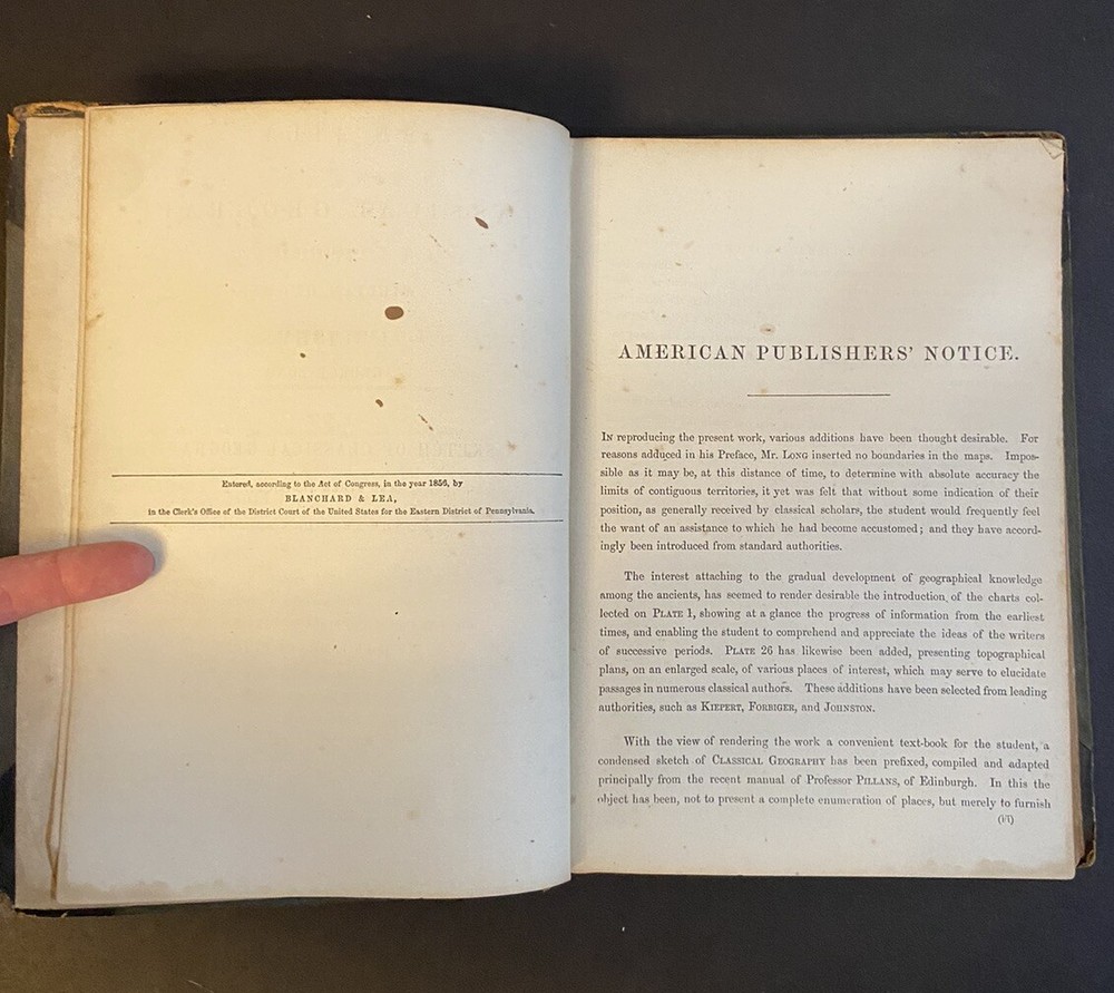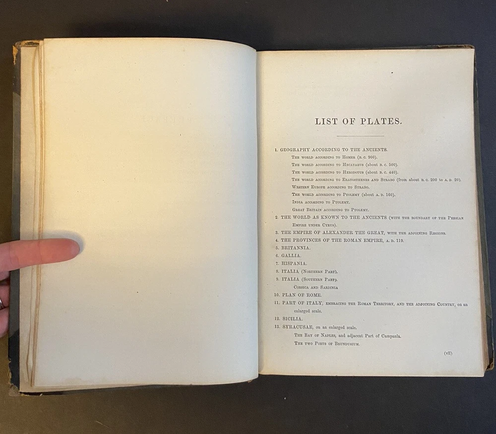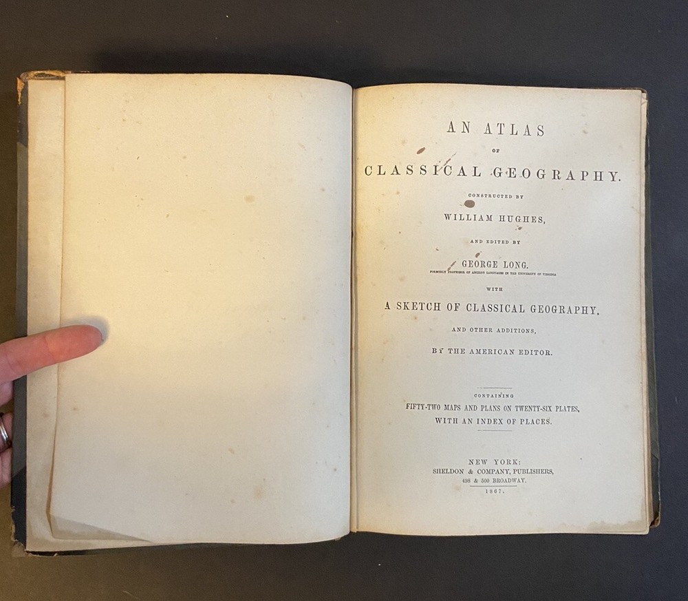 Long's Classical Atlas. An Atlas of Classical Geography, constructed by William Hughes and edited by George Long. Copyright 1867. Fair condition - cover coming off of binding, edges show wear, writing inside cover. Appears to be missing maps 8 and 9. Please see photos and reach out with any specific questions you may have. Thank you for looking! Please message me with any questions and do so before bidding. I'm happy to help if I can. I normally ship Tuesday - Friday. If you need your item pronto, send me a message and I'll try my best to get your item shipped on Saturday or Monday. I recycle packing material and boxes whenever possible - if this is a problem, please let me know.