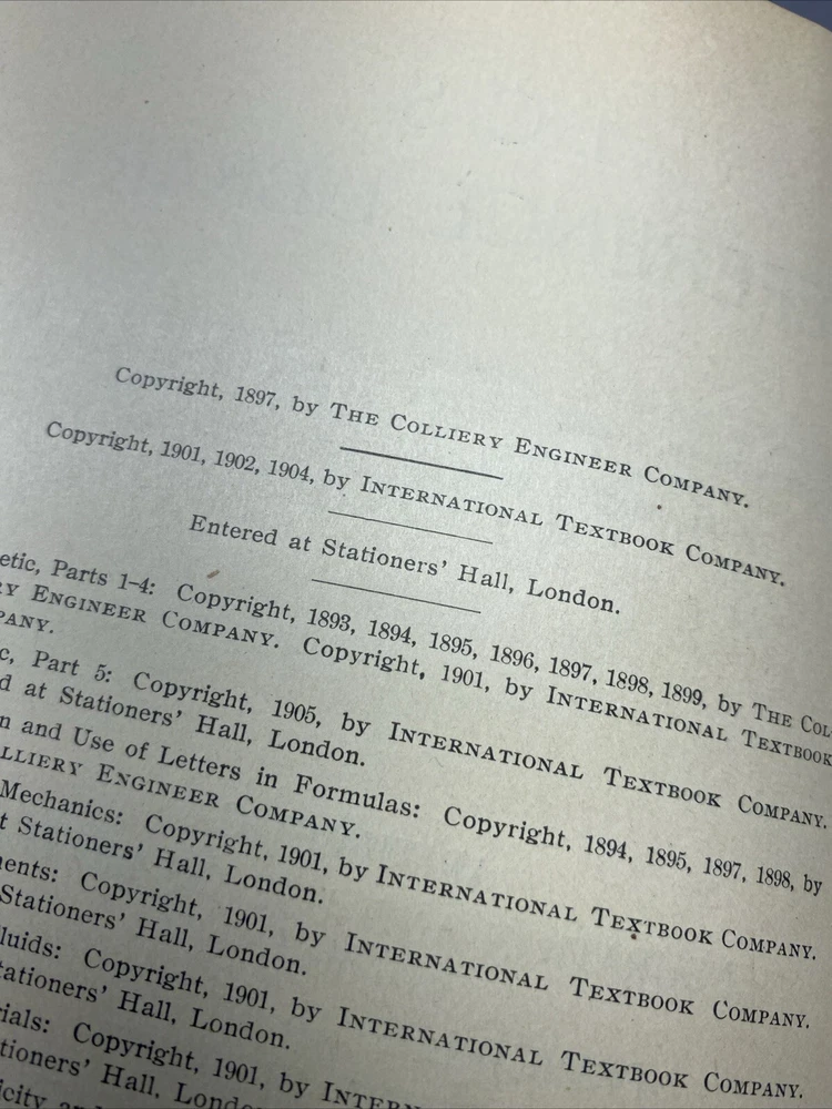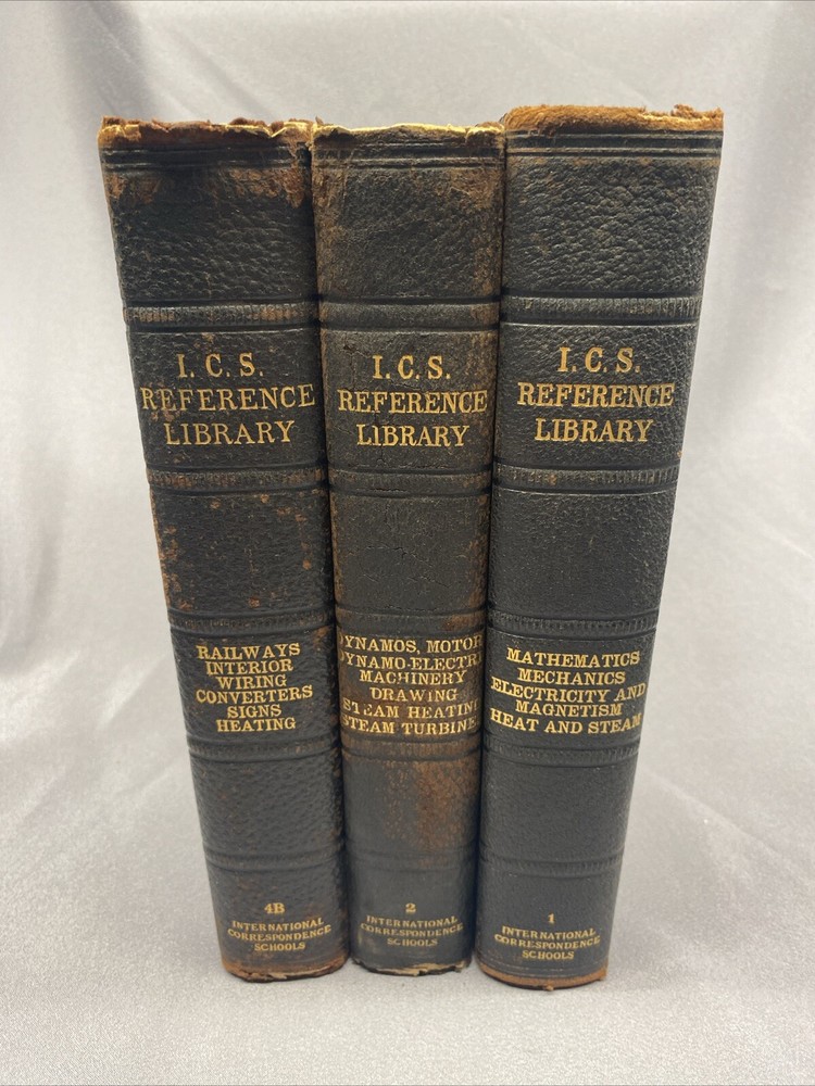 This lot includes three antique books from the International Textbook Company, published in 1904 in Scranton, PA. The books are part of the Reference Library Mathematics Railways Motor series and are bound in leather. The language of the books is English and they cover various topics related to mathematics and engineering. The books are not personalized and have not been signed. They are a great addition to any collection of antiquarian books. Bindings have very minor wear. See photos.