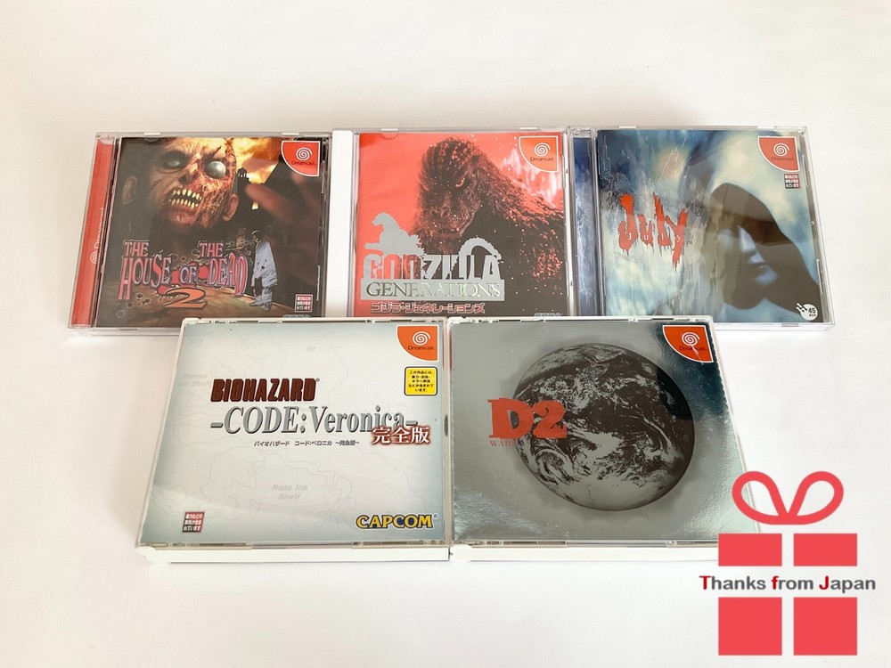 Products Platform : Sega Dreamcast Condition : Good 100% Authentic Product Name : -The House of the Dead 2 -Godzilla Generations -July -Biohazard Code:Veronica Full Version -D2 Language : Japanese Region Code : NTSC-J Shipping How We Ship:"Japan POST" or "FedEx". Item you've purchased, I will transport all together. Please tell me when to be transported individually. Will usually ship within 3 business days of receiving cleared payment. Shipping cost : 20 dollars Payment We accept payment through ebay only. International Buyers - Please Note *Import duties, taxes and charges are not included in the item price or shipping charges.These charges are the buyers responsibility. *Please check with your country customs office to determine what these additional costs will be prior to bidding/buying. *These charges are normally collected by the delivering freight (shipping) company or when you pick the item up - do not confuse them for additional shipping charges. *We do not mark merchandise values below value or mark items as gifts - US and International government regulations prohibit such behavior. Return & Questions For returns within 30 days, please explain and consult in advance. Any other questions will be answered within 48 hours.