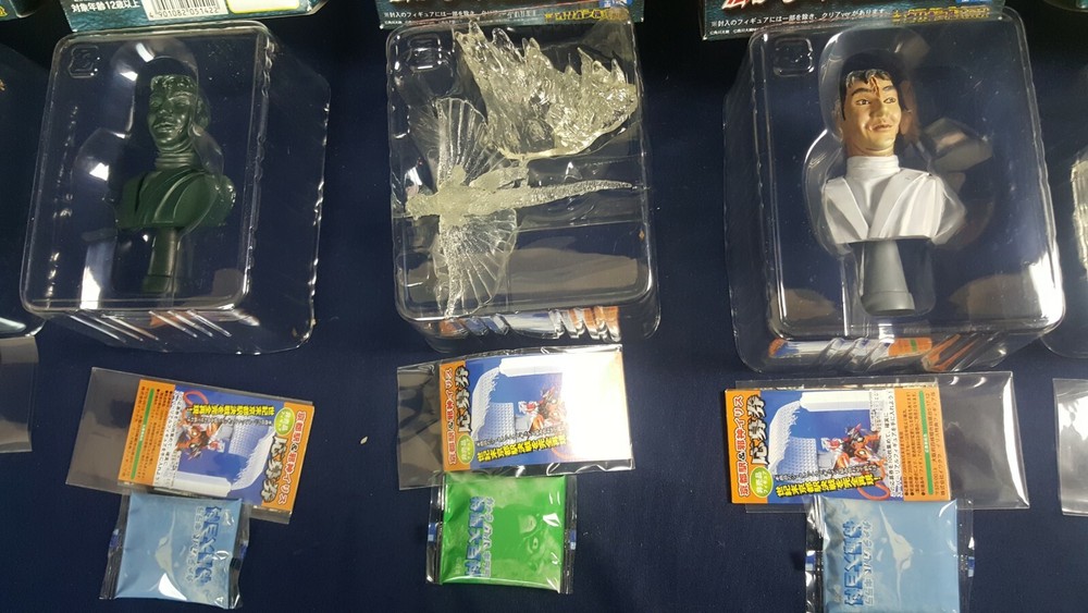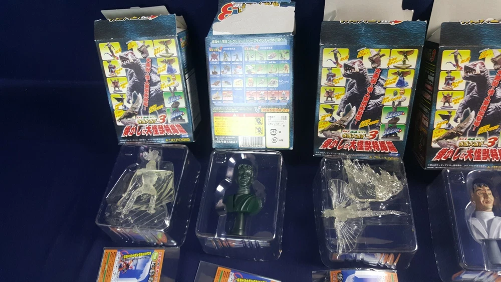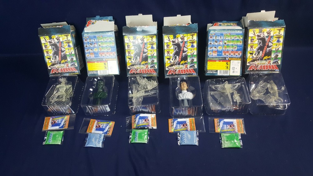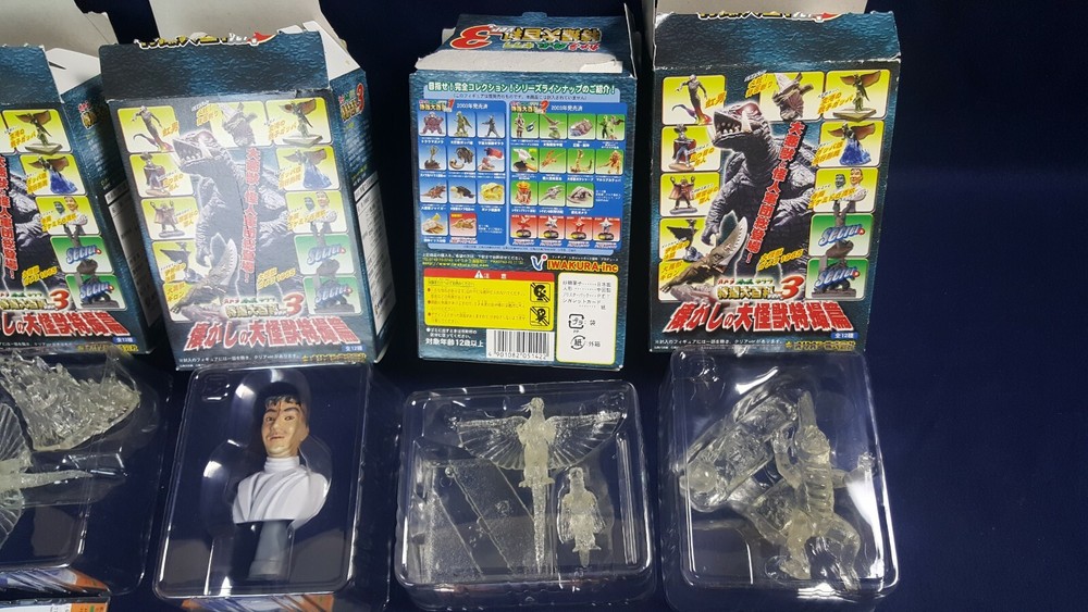 For sale is a lot of 6 open box Iwakura Gamera figures from the estate of a local toy collector. These are dated 2005, and they are miniature figures, some busts and some clear. One figure appears to be a Godzilla-type figure, and the words Tokusatsu Daihyakka may also be associated with the lot. Again, I got some conflicting information in my research, and I welcome any clarifying information you may have. They come in the boxes shown, but since I cannot read Japanese, I can't say for certain whether each one matches the box it's in. The figures are in original clear plastic packaging and do not appear to have been opened. 5 of them come with a sealed card, along with a small unopened pack of something I can't identify. I don't know if anything else was originally in these packages, but the figures and cards look to be in new, mint condition. Please send me questions to help you better understand what you're getting here. The shipping weight is 2 pounds. Please ask questions before bidding so that I can insure you know exactly what you are bidding on. Because I offer multiple pictures and detailed descriptions and prompt reply to questions, I do not offer a standing refund option. However, if I made a mistake (I am human), or you have a concern, please contact me, and I will do everything reasonably possible to make it right, and my feedback reflects that. I want both us to come out winners here. You can expect the items I sell to be smoke-free, unless I specifically state otherwise. At your request, I will be happy to create a combined shipping invoice on multiple purchases, subject to size/weight restrictions or any other eBay policy limitations. However, eBay’s Global Shipping program does not permit combined shipping for international buyers. Also, I am not ever able to provide international returns. As of 2019, many states have begun to require that eBay sellers charge sales tax on purchases made from residents of their state. If your state requires sales tax payment, that tax payment will show up on your invoice for final payment. I am sorry about this added cost, but it is a requirement of your state, and not a cent goes to me. Payment for purchases are expected within 3 days of auction end. Have fun.