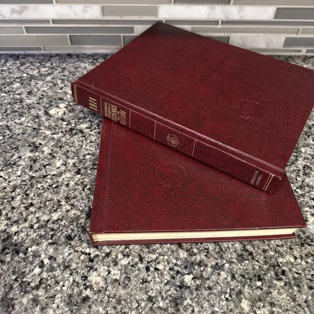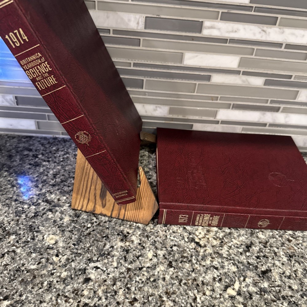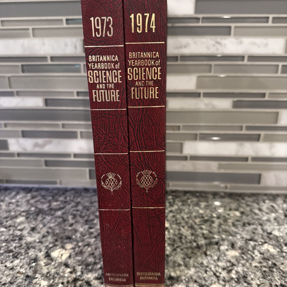 eBay Lot of 2 Britannica Yearbooks of Science and the Future – 1973 & 1974 – Mint Condition Listing Description: Lot includes the 1973 and 1974 Britannica Yearbooks of Science and the Future — a stunning pair in mint condition with deep maroon leatherette covers, gold embossed titles, and pristine, unmarked pages. No fading, only very minor shelf wear. These volumes showcase major scientific developments and future projections from the early ’70s — from space exploration to technological predictions. A must-have companion for any Britannica collector or vintage science enthusiast. Will ship safely and quickly. Bonus Tip: Check out my other listings for rare and collectible book bundles — or subscribe to my store so you don’t miss new arrivals. I always offer discounts for returning buyers!