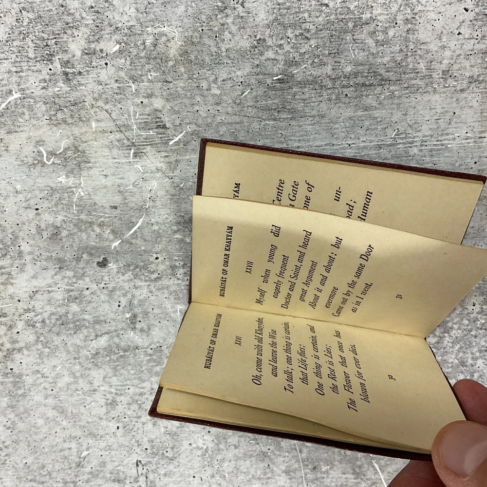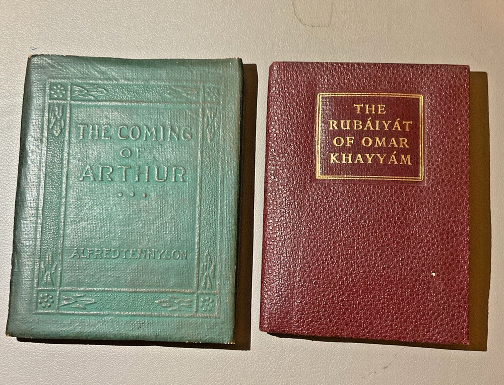 Enhance your book collection with this exquisite lot of two mini leather books. The Rubaiyat book of poetry by Omar Khayyam and Alfred Tennyson's The Coming of Arthur. They are printed by Collins London & Glasgow, and Little Leather Library Corp NY, respectively. Both classics and great additions to any vintage book collection