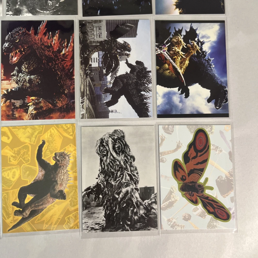 light to moderate play condition with some denting, scuffing, please see photos. Includes 1 Godzilla Is Back 2 Godzilla Filmography 3 Godzilla Filmography 4 Godzilla Filmography 5 Godzilla Filmography 6 Godzilla Filmography 7 Godzilla Filmography 8 Godzilla Filmography 9 Godzilla Filmography 10 Godzilla Filmography 13 Godzilla Filmography 14 Godzilla Filmography 15 Godzilla Filmography 16 Godzilla Filmography - Glossy Variant 17 Godzilla Filmography 18 Godzilla Filmography 19 Godzilla Filmography - Glossy Variant 20 Godzilla Filmography 21 Godzilla Filmography 22 Godzilla Filmography 23 Godzilla Filmography 25 Godzilla Filmography 26 Godzilla Filmography 27 Godzilla Filmography 28 Godzilla Filmography 29 Godzilla Filmography 30 Godzilla Filmography 31 Godzilla Friends & Foes 32 Godzilla Friends & Foes 33 Godzilla Friends & Foes 34 Godzilla Friends & Foes 35 Godzilla Friends & Foes 36 Godzilla Friends & Foes 37 Godzilla Friends & Foes 38 Godzilla Friends & Foes 39 Godzilla Origins Classified 40 Godzilla Origins Classified 41 Godzilla Origins Classified 42 Godzilla Origins Classified 48 Godzilla Rarities 49 Godzilla Rarities 50 Godzilla Rarities 51 Godzilla Rarities 52 Godzilla Rarities 53 Godzilla Memorabilia 54 Godzilla Memorabilia 55 Godzilla Memorabilia 56 Godzilla Memorabilia 57 Godzilla Memorabilia 58 Godzilla Memorabilia 59 Godzilla Memorabilia 60 Godzilla Memorabilia 61 Godzilla Memorabilia 62 Godzilla Memorabilia 63 Godzilla Memorabilia 64 Godzilla Memorabilia 65 Godzilla Lives 66 Godzilla Lives 67 Godzilla Lives 68 Godzilla Lives 69 Godzilla Lives 70 Godzilla Lives 71 Godzilla Lives 72 Checklist Dive into the world of giant monsters with the "Godzilla King of the Monsters" Collector Cards. Manufactured by Comic Images in 2006, this set encapsulates the thrilling adventure and fantasy that the franchise is known for. Featuring an array of beloved characters like Godzilla, Mothra, and Mechagodzilla, each card is a piece of the extensive Godzilla universe, printed on quality card stock that feels like a slice of movie history in your hands. The lot includes a diverse selection of cards from the base set, each telling its own story without the need for an autograph. Designed for fans aged 4 and above, these English-language cards are original prints from the United States, showcasing the intricate artwork and captivating details that have made the "Godzilla King of the Monsters" a classic addition to any collection. Whether you're a seasoned collector or just starting out, these cards are sure to be a roaring success.