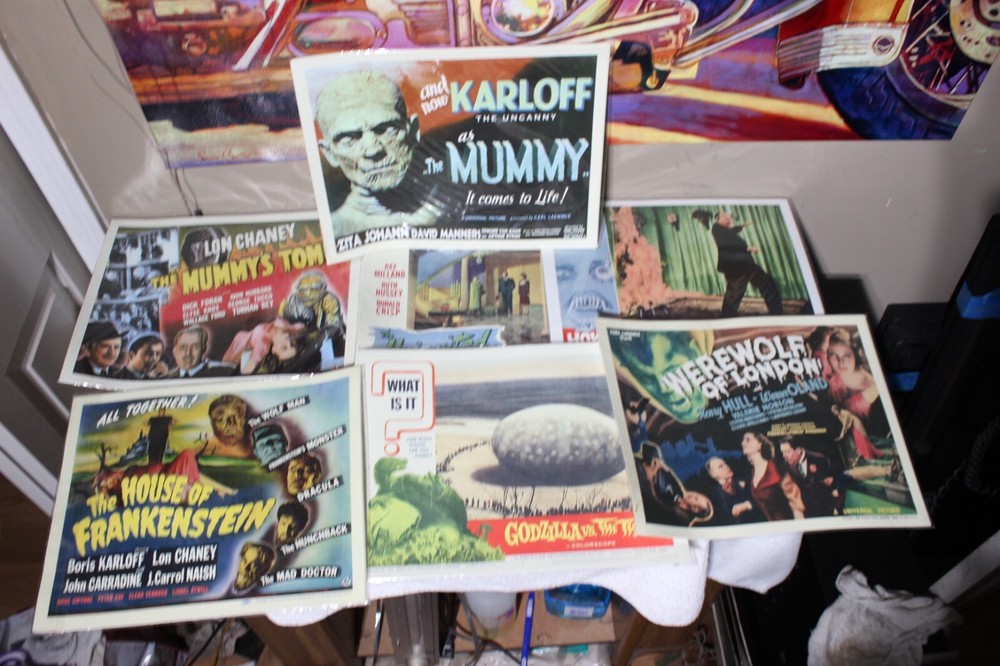 Seven sets of 8 lobby cards sold as lot All high quality high resolution pieces Sealed The Mummy's Tomb The Mummy House Of Frankenstein Godzilla VS The Thing Werewolf of London Make a Monster The uninvited Sold shipped UPS boxed