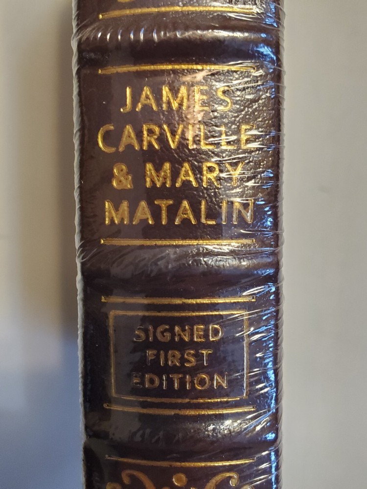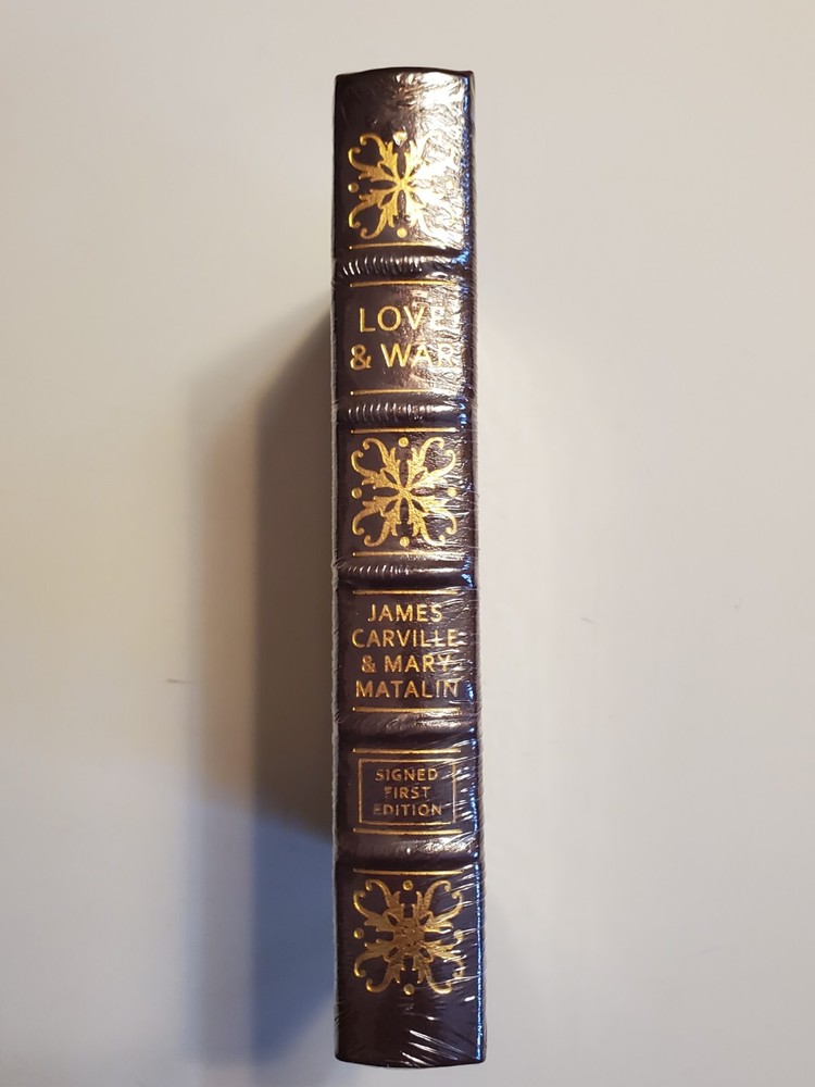 Love and War by James Carville & Mary Matalin. Like new Easton Press Signed First Edition in original shrink wrap. This hardcover book boasts the features that are expected from Easton Press: signed by the authors, bound in genuine leather, with gold lettering and decorations on the cover and spine, gilded page edging and a sewn-in satin bookmark. Decorative pattern is the same on front and back cover. The text is printed on archival quality acid-neutral paper. These books are a pleasure both to display and to read.