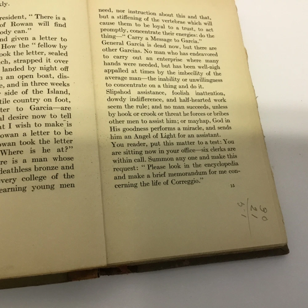 This stunning Roycrofters edition is a true collector's gem! The embossed leather spine and ribbon marker add such elegance to Hubbard's timeless wisdom on business loyalty. A genuine treasure that feels special to hold and read.