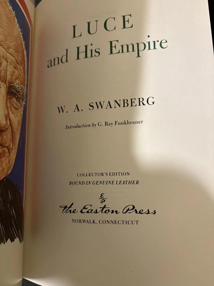 This rare and highly sought-after book, "Luce and His Empire" by W. A. Swanberg, is a must-have for any serious collector of literature. The book, published in 1989 by the Easton Press, boasts a beautiful leather binding and a host of special attributes that make it a true gem in any collection. The author, W. A. Swanberg, has crafted a captivating biography that chronicles the life and empire of Luce. This book is a collector's edition and is sure to be a prized possession for years to come. If you are a fan of biographies and autobiographies, or simply looking for an interesting addition to your collection, "Luce and His Empire" is a must-read.