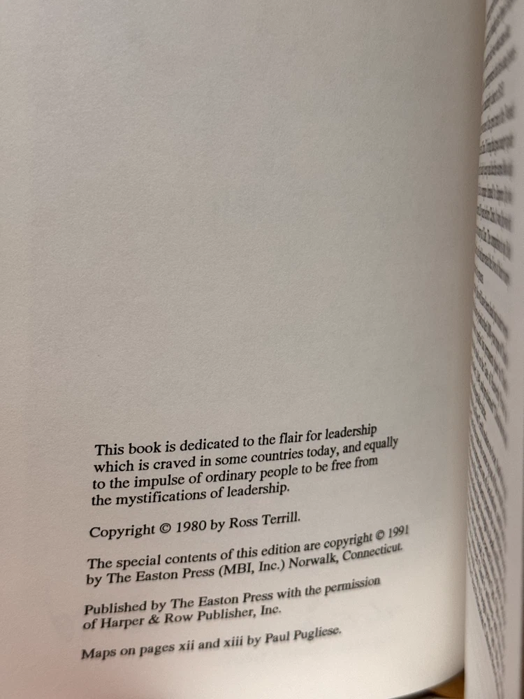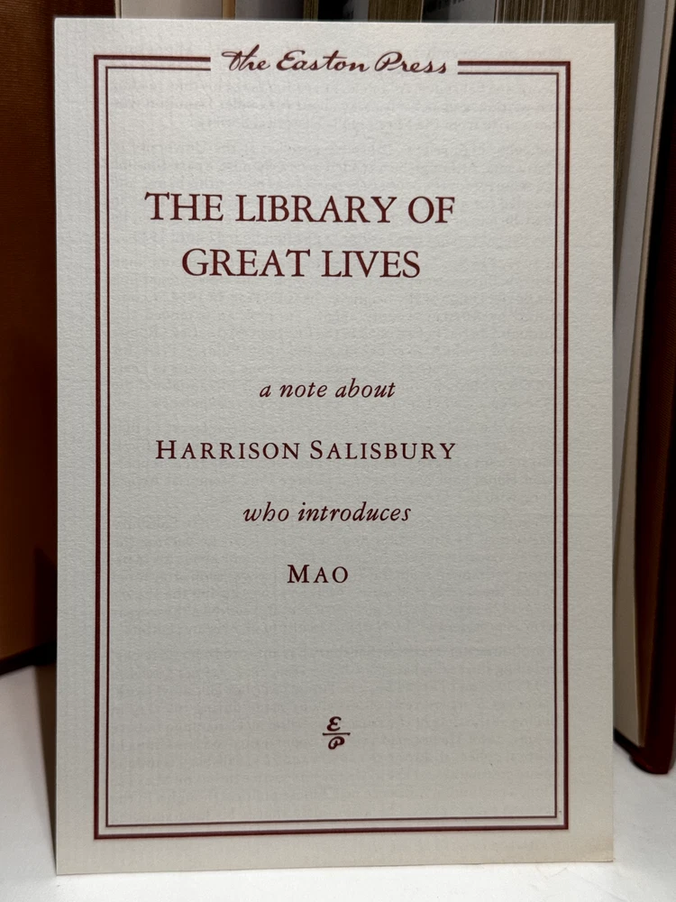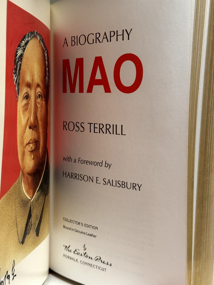 You are bidding on a copy of a 1st Edition, 1st Printing of the Easton Press' LIBRARY OF GREAT LIVES series edition of Ross Terrill's MAO: A BIOGRAPHY. The book is about the life of the great leader of Chinese Communist Party, Mao Zedong. Foreword by Harrison E. Salisbury. Bound in beautiful genuine moroccan cowhide leather, the book features raised bars on the spine, gold tooling on the cover and spine, Moire ribbed endpages, satin silk sewn-in bookmark, 22k gold dust on page ends on all 3 sides. Printed on archival quality acid-neutral paper, that will last for generations without diminishing in quality or looks. LIMITED, COLLECTOR'S EDITION, PRINTED SPECIALLY FOR SUBSCRIBERS TO THE LIBRARY OF GREAT LIVES. Free Shipping in all of Continental United States. All other buyers, please check with me for shipping rates before bidding. See my other listings. I have a large collection of rare and collectible books, most leather-bound, others of first edition, first printing, even unpublished manuscripts. I will combine them during shipping so you can receive them together. Just message me your intent to buy more than one book, and I will hold them to be shipped together. Happy Buying!