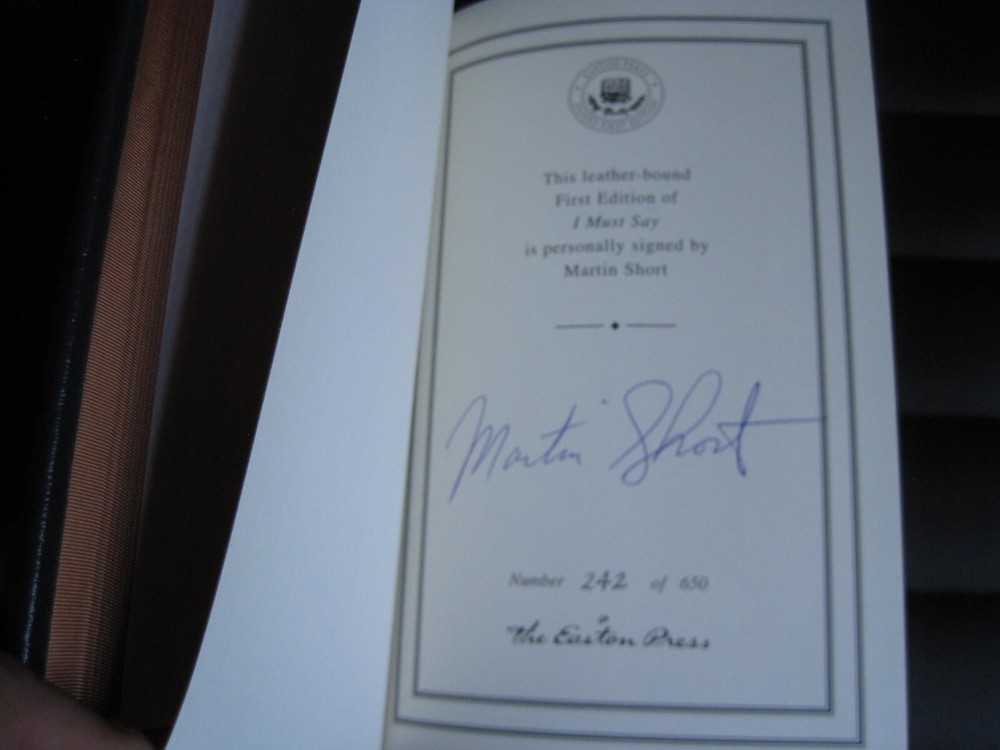 This is a leather bound signed numbered first edition of Martin Short's best selling autobiography - "I Must Say - My Life As A Humble Comedy Legend" , a fascinating memoir written by the famous actor, comedian and TV personality. The book is unread and in great condition (see images). Signed by the author on the limitation page, this is book number 242 of only 650 numbered copies ever printed. The publisher's note card and the signed and dated certificate of authenticity are also included. Easton Press books are the golden standard in the publishing industry, highly collectible and lasting generations. Easton Press Full Genuine Leather Dubbed Spine Accented Wit 22 kt. Real Gold Satin Ribbon Page Marker Distinctive Cover Design Gilded Page Edges To Protect Against Humidity High Quality Acid - Free paper Smyth-Sewn Pages Silk-Moire Endleaves I combine multiple items for savings on shipping charges. I ship worldwide. Please ask about international shipping charges and/or different shipping options. Thank you!