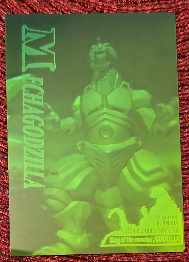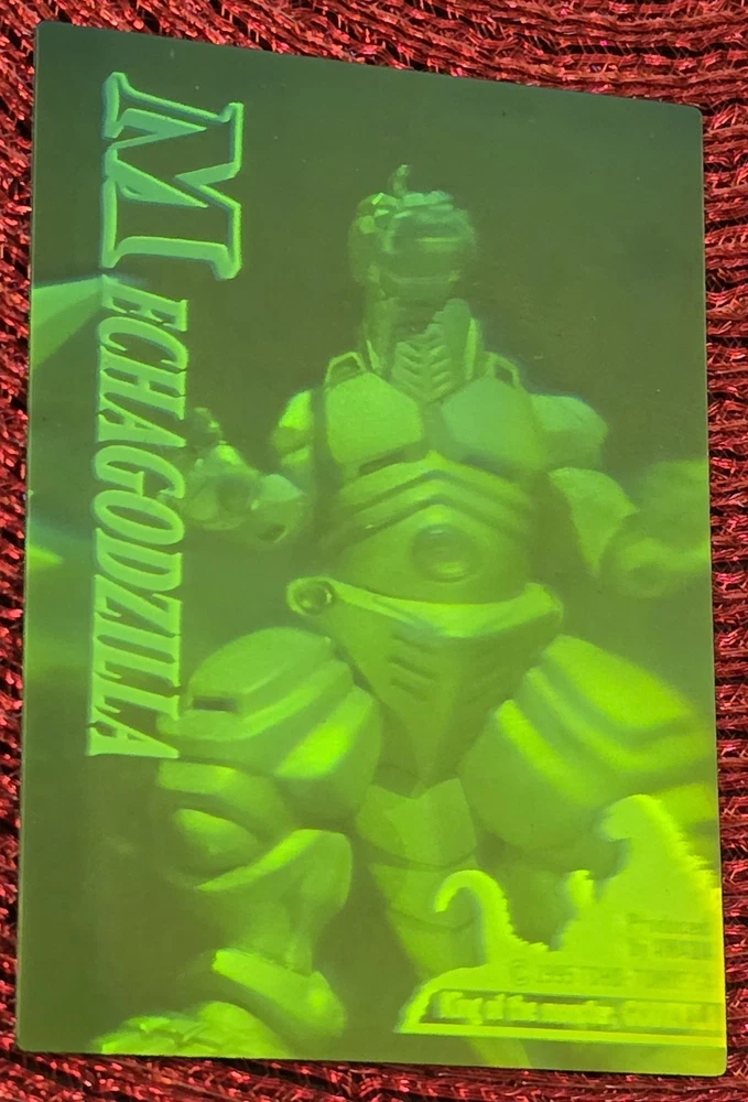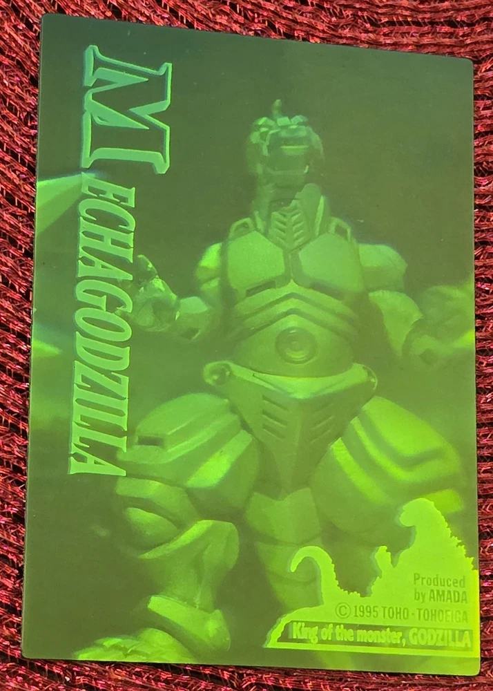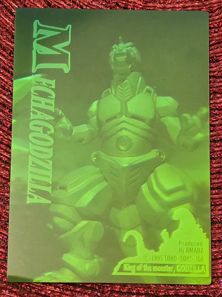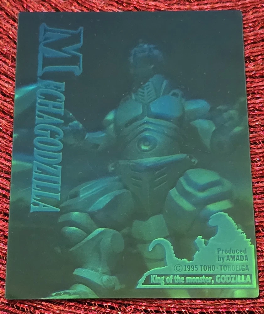 💥💥GEM MINT CONDITION💥💥 This rare and coveted non-sport trading card features Mechagodzilla, the formidable monster from the 1995 Godzilla movie. Manufactured by Amada Printing Mfg. Co., Ltd. in Japan, this original card is made of hologram and card stock materials and is a part of the 1995 Amada Godzilla Story - Holograms insert set. The card is in mint condition and is a must-have for any serious collector of Godzilla memorabilia. The hologram feature adds an extra layer of excitement and uniqueness to this already valuable card. Don't miss your chance to add this amazing card to your collection.