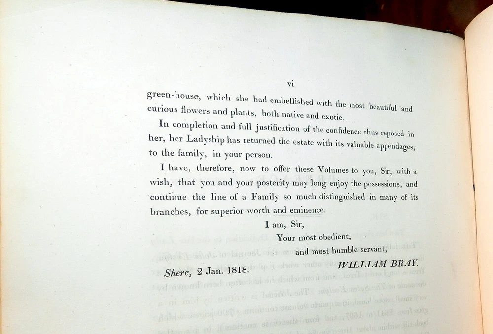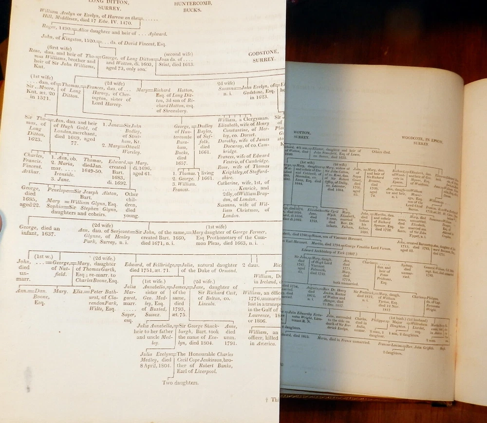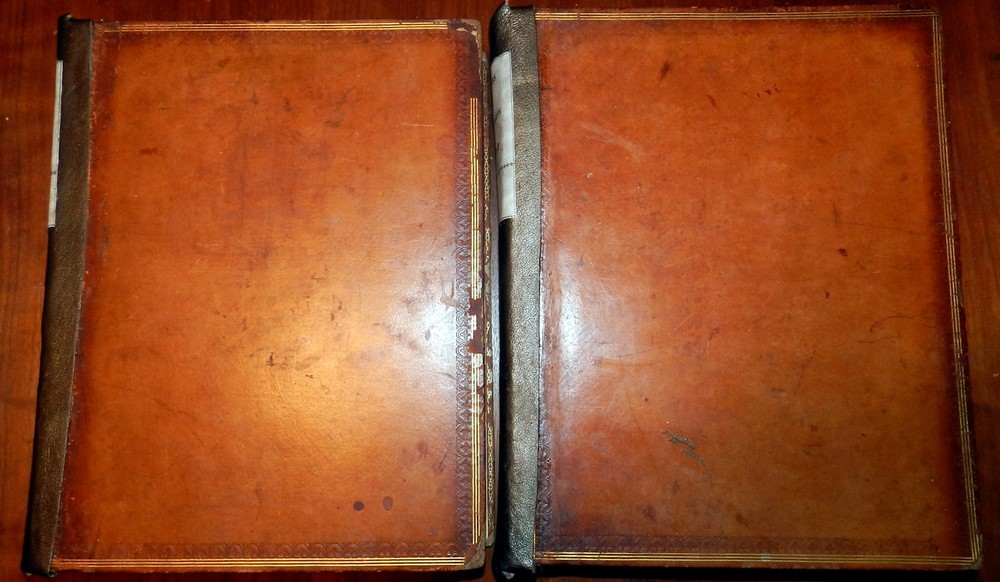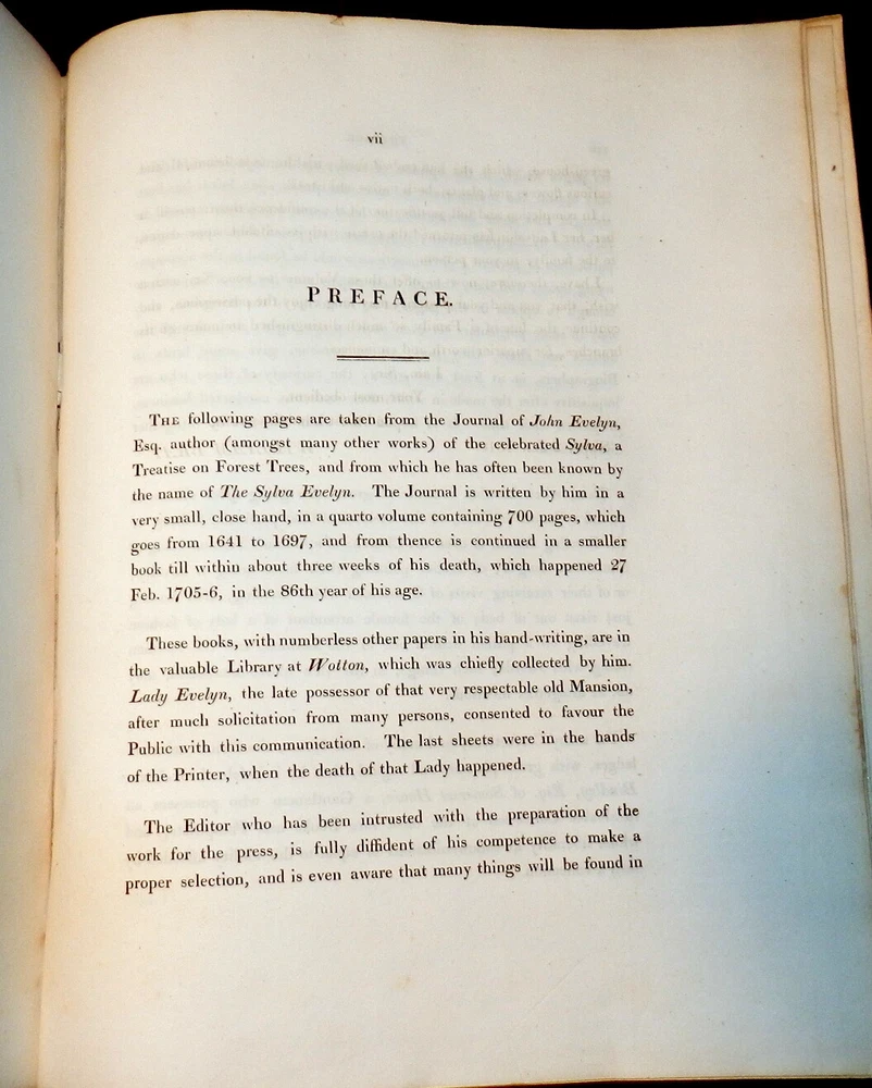 MEMOIRS OF JOHN EVELYN, 2 Vols. 1818 1st Ed. Leather, Plates. English Diarist MEMOIRS OF JOHN EVELYN, 2 Vols. 1818 1st Ed. Leather, Plates. English Diarist MEMOIRS ILLUSTRATIVE OF THE LIFE AND WRITINGS OF JOHN EVELYN, ESQ. F.R.S. Comprising his Diary, from the year 1641 to 1705-6, and a selection of his familiar letters. To which is subjoined, The Private Correspondence between King Charles I. and his Secretary of State, Sir Edward Nicholas, Whilst his Majesty was in Scotland, 1641, and at other times during the Civil War; also between Sir Edward Hyde, afterwards Earl of Clarendon, and Sir Richard Browne, Ambassador to the Court of France, in the time of King Charles I. and the Usurpation. The whole now first published, from the original mss. in two volumes Edited by William Bray, Esq. Fellow and Treasurer of the Society of Antiquaries of London London: Printed for Henry Colburn, 1818. First Edition. Two volumes. Hardcovers. Full leather, original polished calf boards with gilt rulings, later leather spine and spine labels, marbled page edges. Large quartos (11.9 inches tall). Volume I: xxiii, [1], 620 pages + portrait frontis + 2 plates (1 folding) + 1 genealogical table (folding) + 1 plan of Deptford (folding). Volume II: viii, [4], 366, [1], [1], 335, [1] pages + portrait frontis + 3 plates. Armorial book plate of early owner (E. Herbert Litchfield) on front pastedowns as well as a second bookplate of Francis Turreff. John Evelyn FRS (31 October 1620 – 27 February 1706) was an English writer, gardener and diarist. John Evelyn's diary, or memoir, spanned the period of his adult life from 1640, when he was a student, to 1706, the year he died. He did not write daily at all times. The many volumes provide insight into life and events at a time before regular magazines or newspapers were published, making diaries of greater interest to modern historians than such works might have been at later periods. Evelyn's work covers art, culture and politics, including the execution of Charles I, Oliver Cromwell's rise and eventual natural death, the last Great Plague of London, and the Great Fire of London in 1666. Evelyn's posthumously "rival" diarist, Samuel Pepys, wrote a different kind of diary, covering a much shorter period, 1660–1669, but in much greater depth, within the same era. Over the years, Evelyn's Diary has been overshadowed by Pepys's chronicles of 17th-century life. Evelyn's Diary remained unpublished as a manuscript until 1818. It is in a quarto volume containing 700 pages, covering the years between 1641 and 1697, and is continued in a smaller book – which brings the narrative down to within three weeks of its author's death. Despite entries going back to 1641, Evelyn only actually started writing his diary much later, relying on almanacs and accounts of other people for many of the earlier events. A selection from this was edited by William Bray, with the permission of the Evelyn family, in 1818, under the title of Memoirs illustrative of the Life and Writings of John Evelyn, comprising his Diary from 1641 to 1705/6, and a Selection of his Familiar Letters. CONDITION: Good Covers. / Very Good+ Contents. (Covers have edge and corner wear, rubbing and soil, some erosion of gilt rulings. Original spines are replaced by later leather spines and title labels. The tightly bound Contents are complete and intact with some offsetting and foxing of title pages and other pages adjacent to the plates, occasional marginal foxing spots of text pages, light or moderate foxing spots on the margins of the plates.) Check our other auctions and store listings for additional unusual items Check our other auctions and store listings for additional unusual items Listing and template services provided by inkFrog