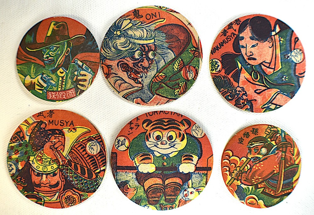 MENKO TRADING CARD GAME CIRCULAR SET OF 6, 1950s