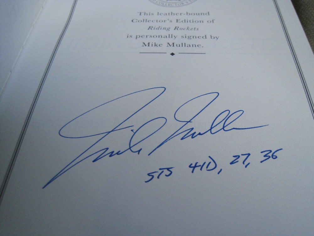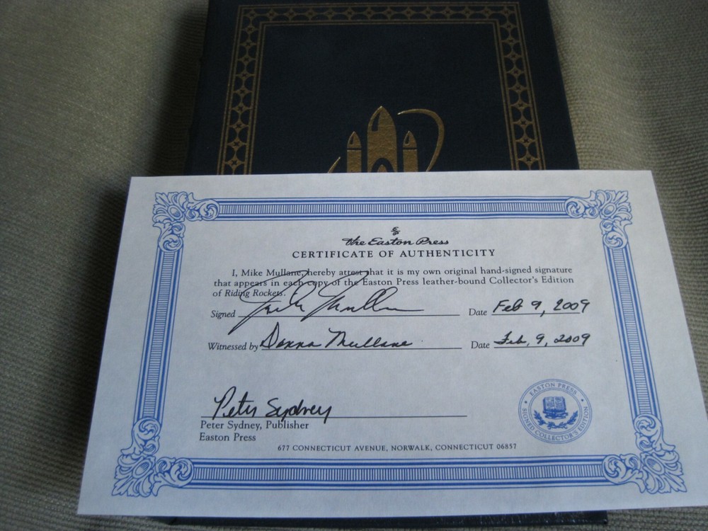 This is a leather bound signed edition of Mike Mullane's best-selling memoir - "Riding Rockets: The Outrageous Tales of a Space Shuttle Astronaut" . One of the first astronaut memoirs from the space-shuttle era tells a thoroughly absorbing story. Mullane, an air force brat, flew 134 missions in Vietnam. In the late 1970s, he volunteered for the shuttle program, was accepted, and flew three orbital missions before retiring. His accounts of those missions are gripping. They leave one in no doubt that the shuttle was a somewhat imperfect instrument that somehow still performed marvels. Mullane also pays tribute to his fellow astronauts, a small community that suffered with every death or other loss to the "family" it constituted, and to his wife, who endured 40 years of the stresses of being a pilot's partner. And while this isn't an expose, Mullane makes it clear that NASA's corporate culture wasn't optimal for getting the results it sought. Despite the shuttle's apparent failures, the era when it was America's mainstay in space laid groundwork for the future, and further shuttle chronicles are needed and deserved. A strong addition to science and space collections of any size. The book is unread and in great condition (see images). Signed by the NASA astronaut on the limitation page, it also includes the signed and dated certificate of authenticity. Easton Press books are the golden standard in the publishing industry, highly collectible and lasting generations. Easton Press Full Genuine Leather Dubbed Spine Accented Wit 22 kt. Real Gold Satin Ribbon Page Marker Distinctive Cover Design Gilded Page Edges To Protect Against Humidity High Quality Acid - Free paper Smyth-Sewn Pages Silk-Moire Endleaves I combine multiple items for savings on shipping charges. I ship worldwide. Please ask about international shipping charges and/or different shipping options. Please check out my other auctions for several rare signed books for sale. Thank you!