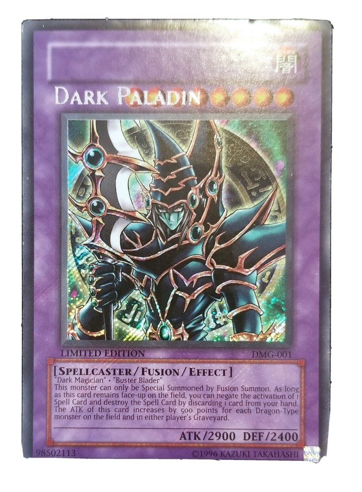 MISPRINT Dark Paladin DMG-001 Limited Edition. Heavy play as seen in pics. Damage can be seen from the front and the back. Very creased so consider before purchasing. US only, will be sent out priorit...