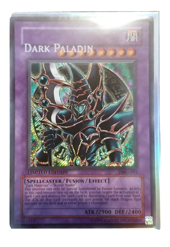 MISPRINT Dark Paladin DMG-001 Limited Edition Moderately Played. Is creased but not too bad. Sides are somewhat worn. Creases you see in the front are shown in the back also. US only. No returns. Will be sent Priority shipping.