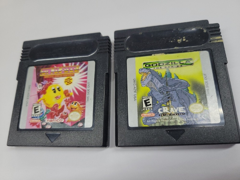 MS. Pac-Man: Special Color Edition, AND GODZILLA CRAVE, Nintendo Game Boy GAMES.